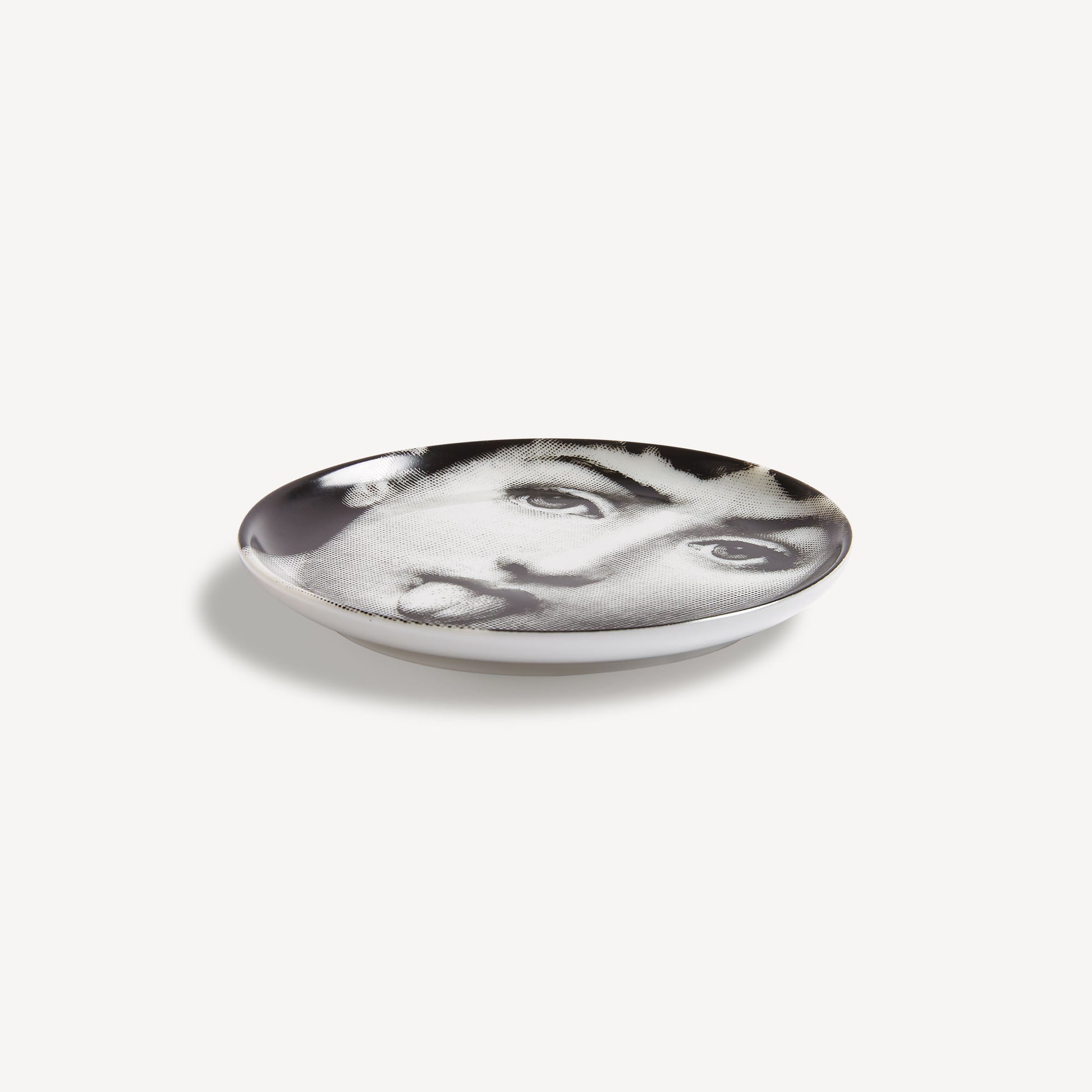 - The round shape of this decorative holder frames Lina Cavalieri's features in one of the innumerable interpretations Fornasetti dedicated to her in the Tema e Variazioni series.