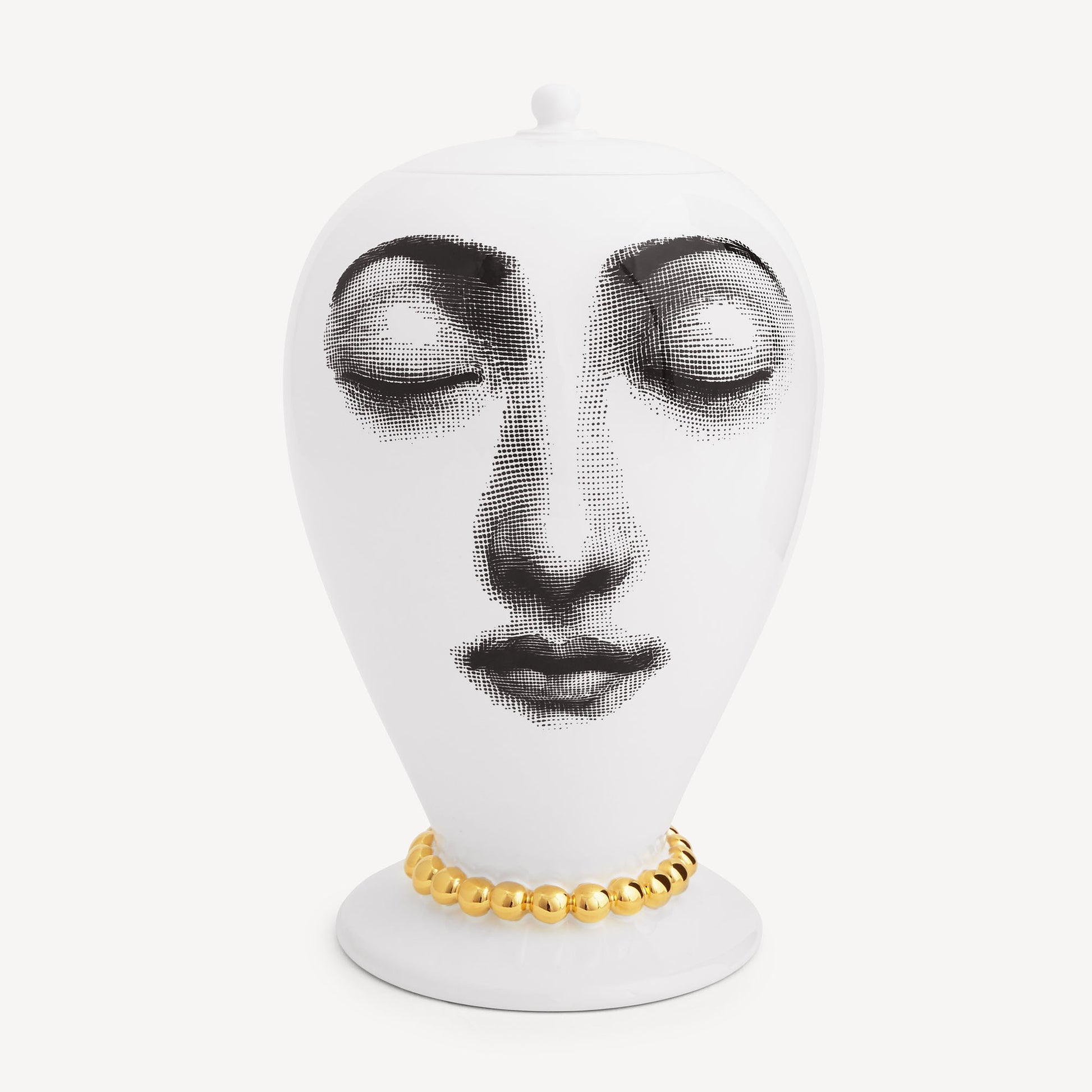 - Lina Cavalieri's iconic features, playfully reinterpreted by Fornasetti, are the inspiration for the Tema e Variazioni series of which this hand-decorated ceramic vase with gold accents is part: a true collector's item.