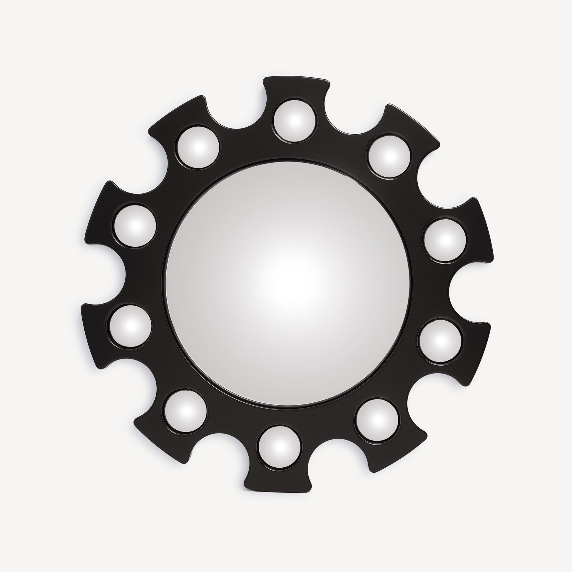 - The abstract lines, the rhythmic alternation of decorations, the frame made of hand-lacquered and silkscreened wood, and the refraction effects created by the convexity of the mirror give this object a touch of magic. A hole on the back allows you to hang it on the wall to embellish any room with originality and class.