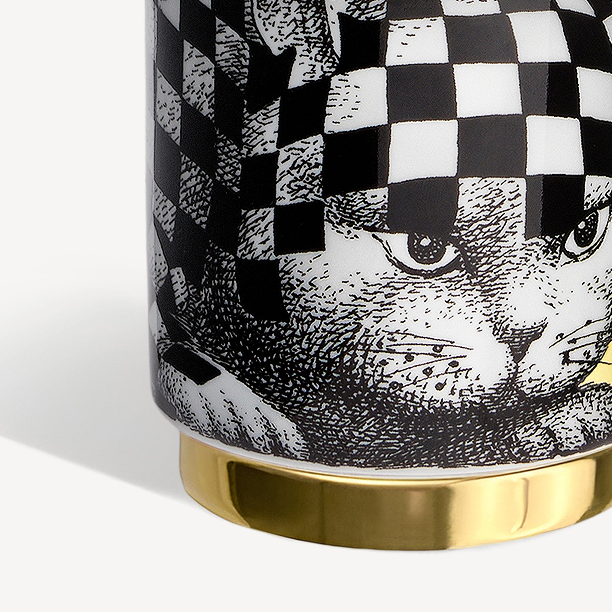 The porcelain candle is decorated by hand and enriched by a golden finish applied by paintbrush to the base.