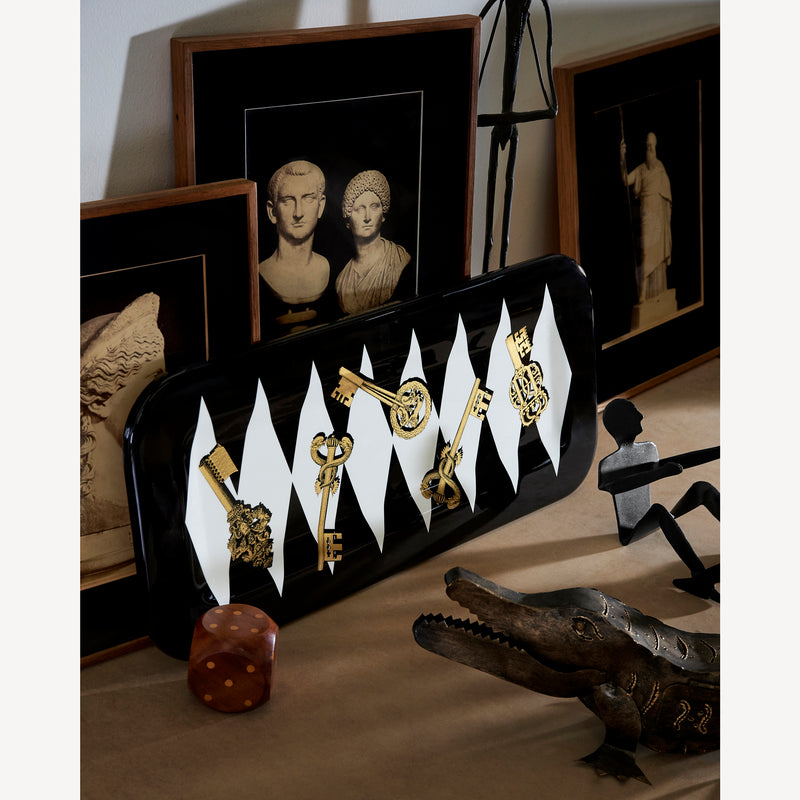 A tray to Fornasetti is like a canvas to a painter: an empty space to fill with one's own creative flair.