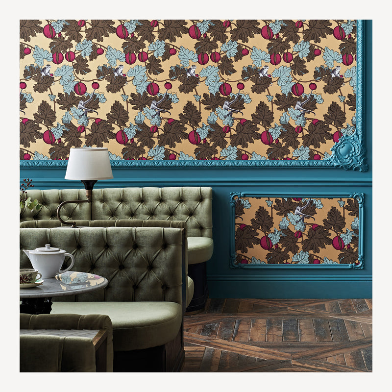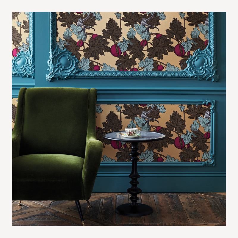 • Wallpaper Frutto Proibito Sky Blue/Plum on Gold
