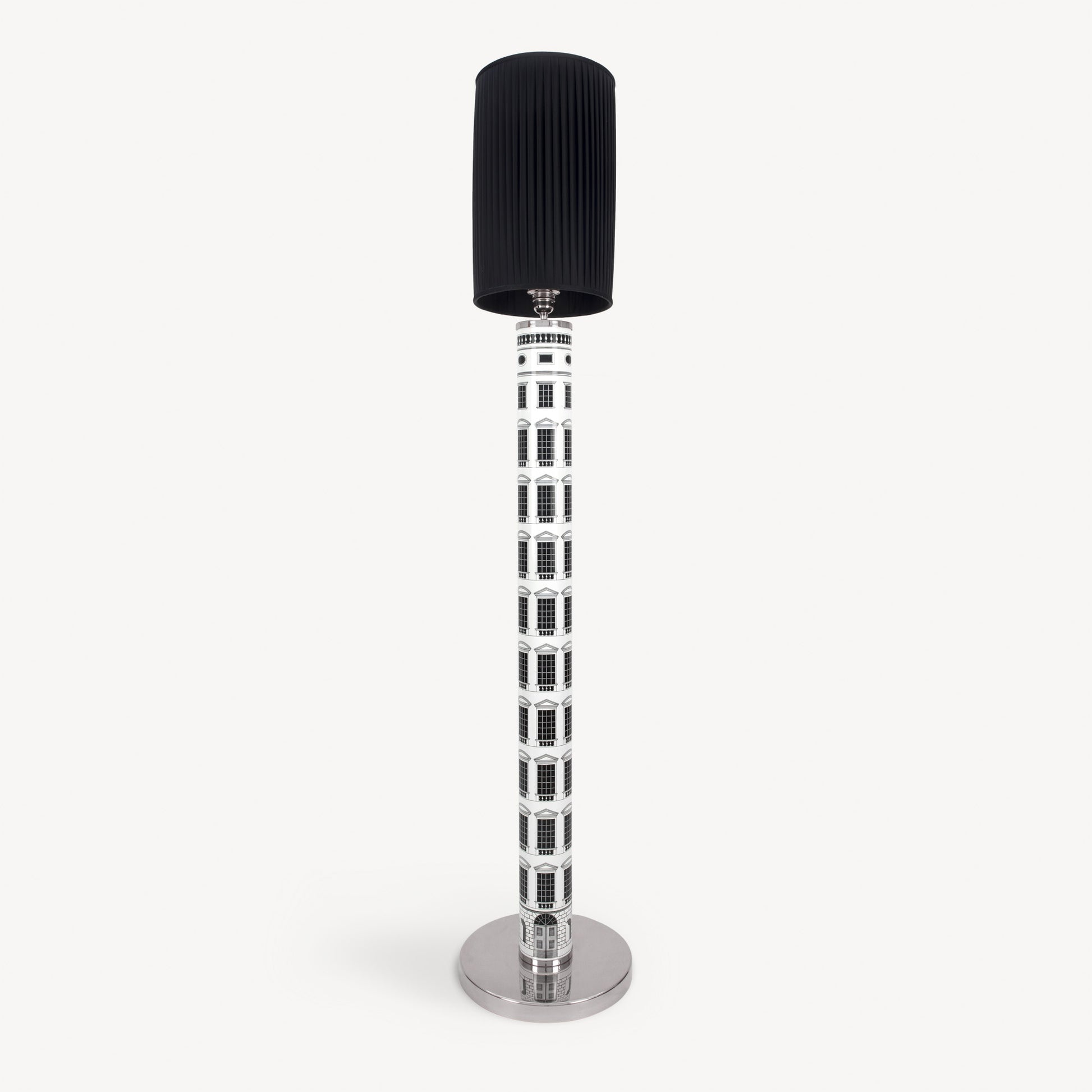 - The architectural decoration makes this hand-silkscreened and decorated floor lamp resemble an imaginative Renaissance skyscraper. Its mere presence illuminates living spaces and environments with wonder.