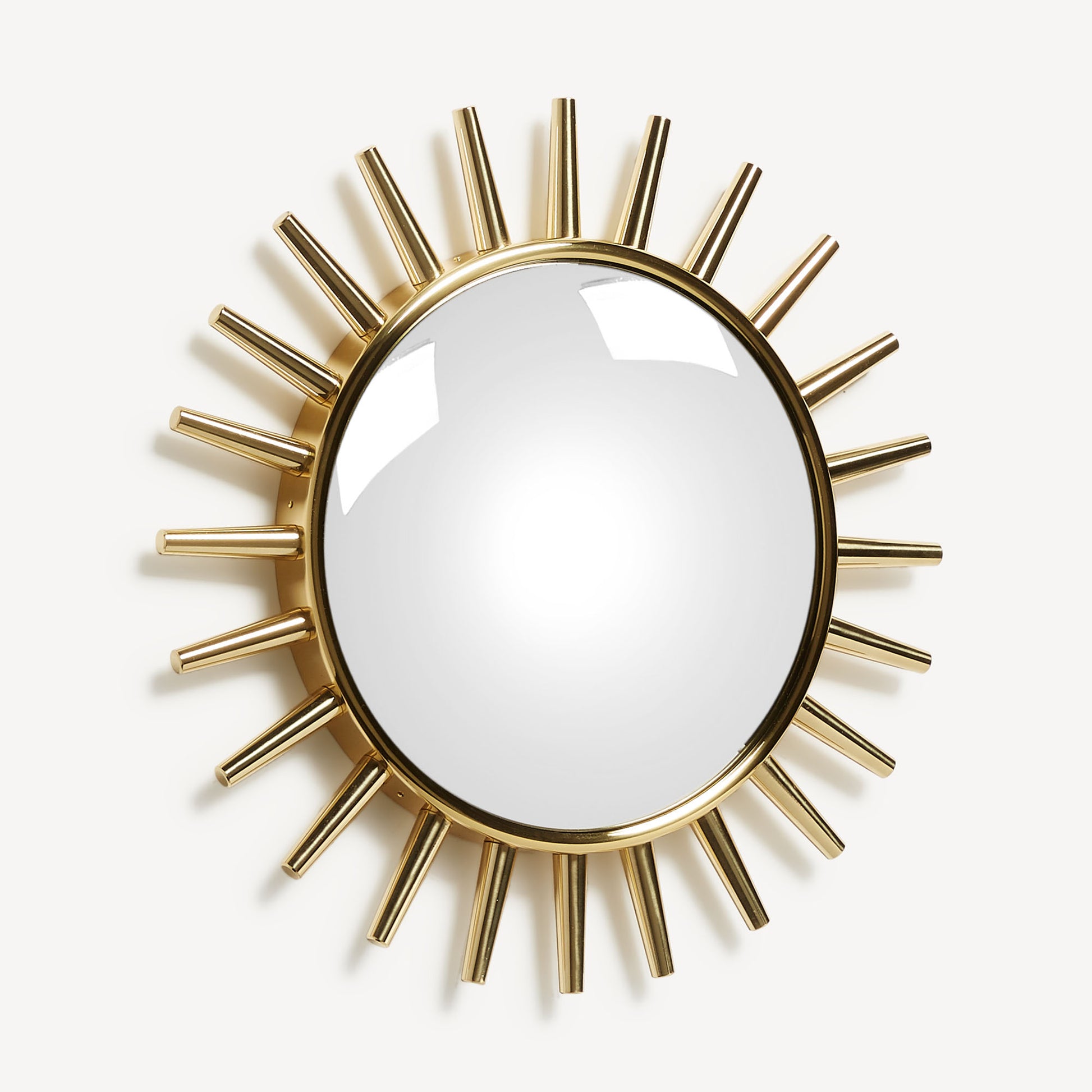 - The convex shape of this brass-framed mirror with Raggiera decoration reflects Fornasetti's limitless imagination while creating striking visual effects.