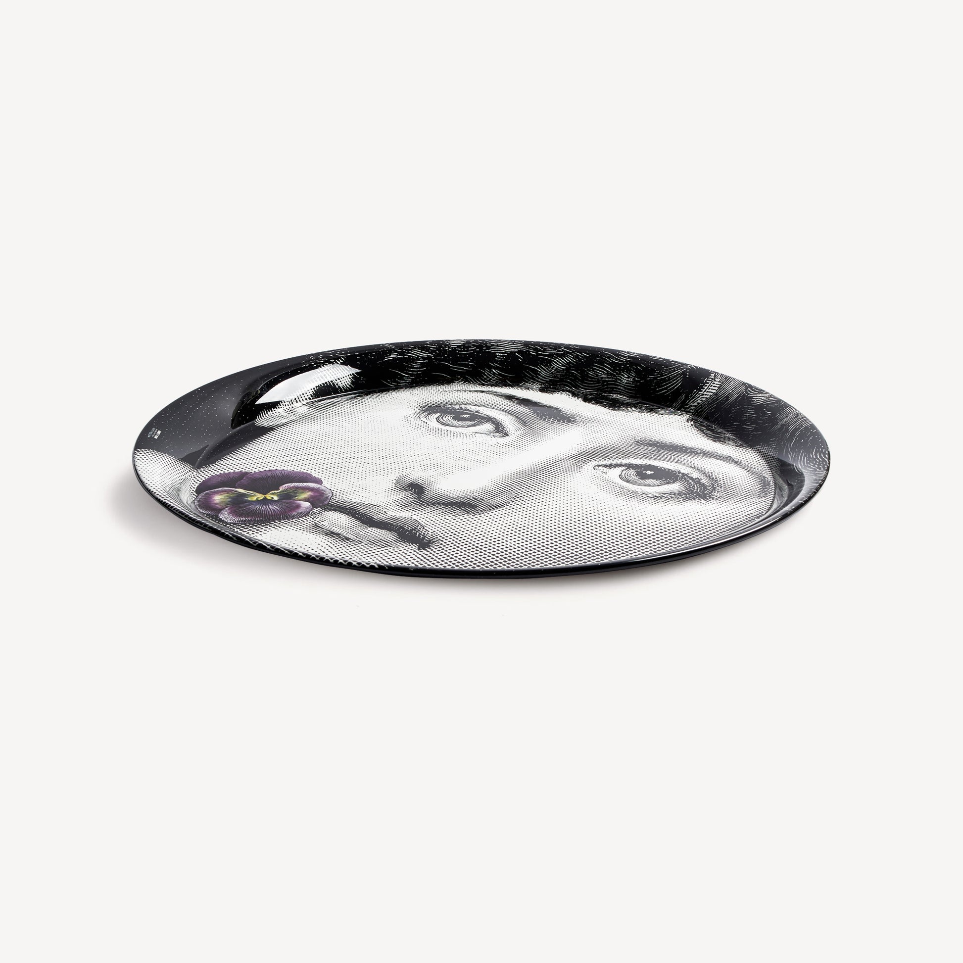- The circular shape and flat surface of Fornasetti trays highlight the features of the opera singer Lina Cavalieri, the iconic figure central to the Atelier's imagery. This metal tray, which is part of the Tema e Variazioni series, is enhanced with hand-painted colour details by the Atelier's painters. When paired with a folding stand, the tray can be transformed into a small table.