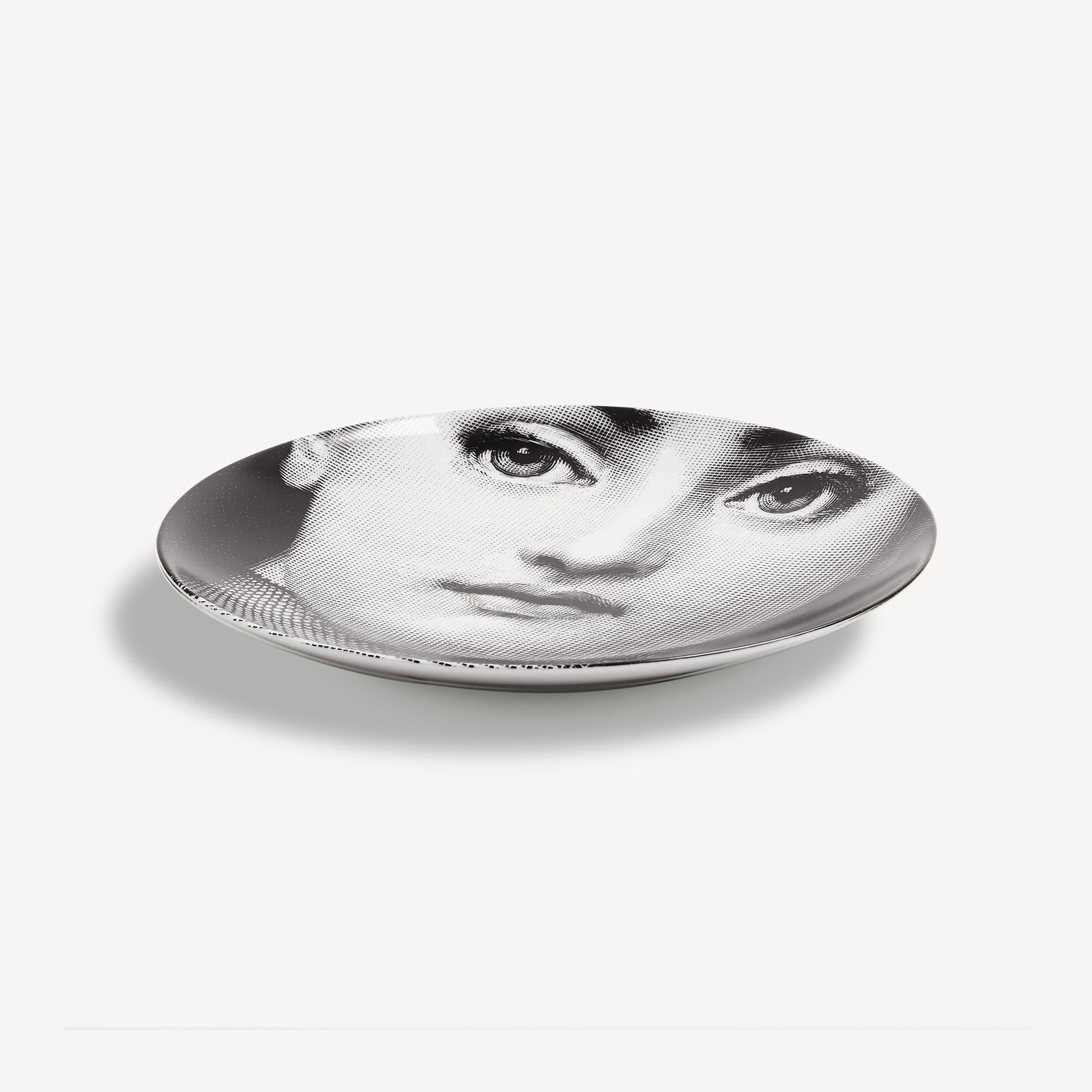 - The face of opera singer Lina Cavalieri, reinterpretated by Piero Fornasetti, adorns this hand-decorated porcelain plate from the iconic Tema e Variazioni series. A true collector's item, you can use it as a wall plate, thanks to the two holes on the back, but also as an ornamental plate for table art. For cleaning, we recommend a damp cloth without any soaps or solvents.