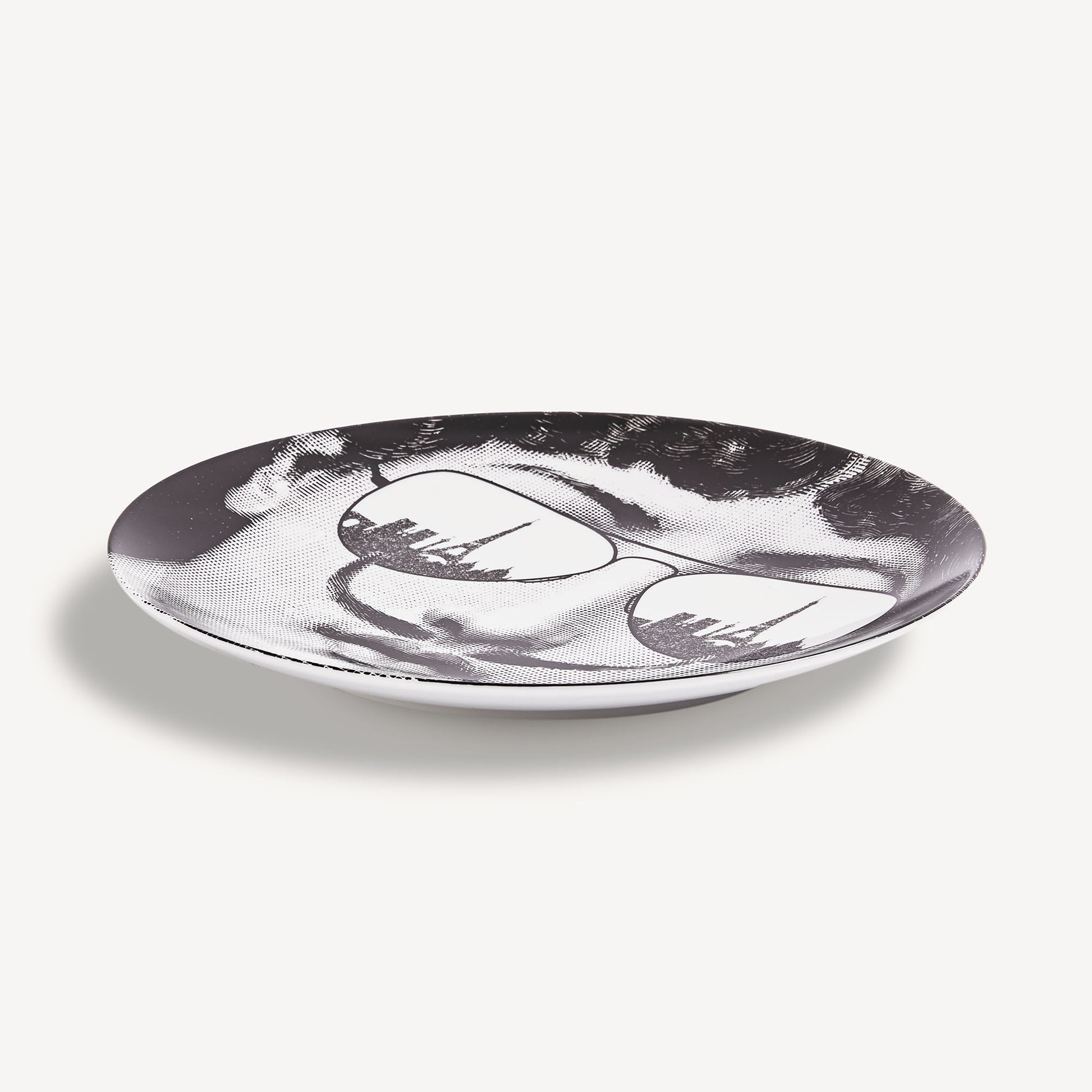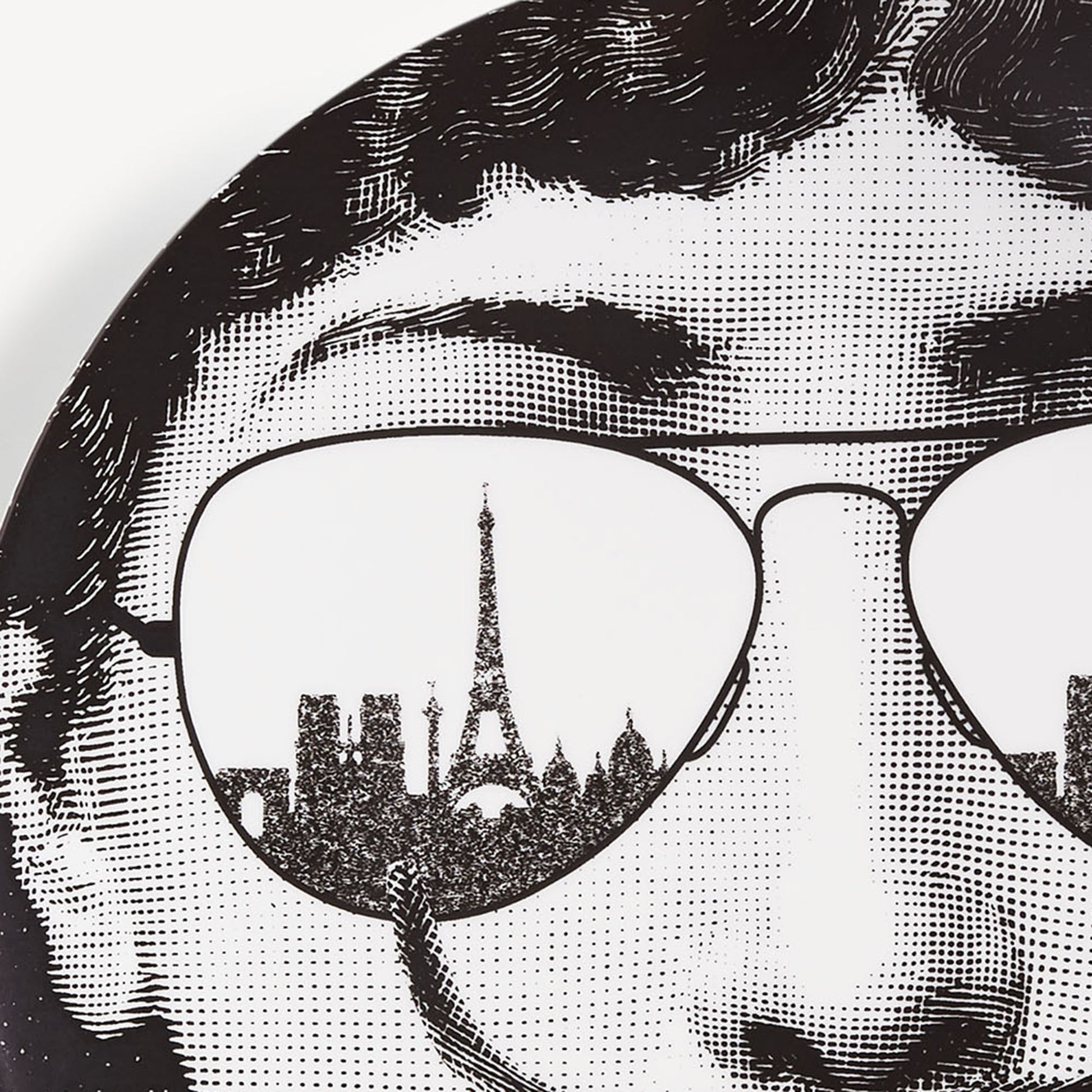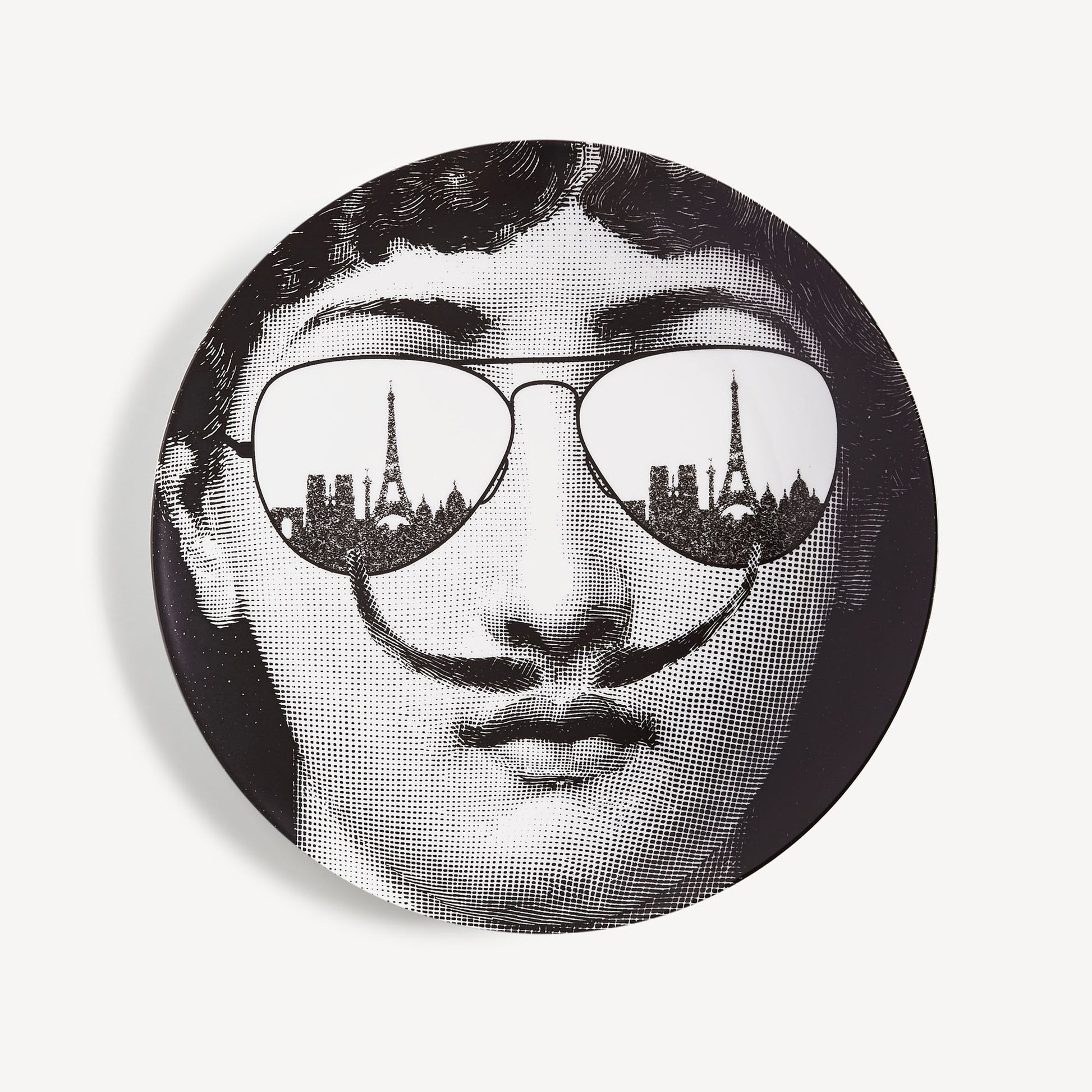 - The face of opera singer Lina Cavalieri, reinterpretated by Piero Fornasetti, adorns this hand-decorated porcelain plate from the iconic Tema e Variazioni series. A true collector's item, you can use it as a wall plate, thanks to the two holes on the back, but also as an ornamental plate for table art. For cleaning, we recommend a damp cloth without any soaps or solvents.