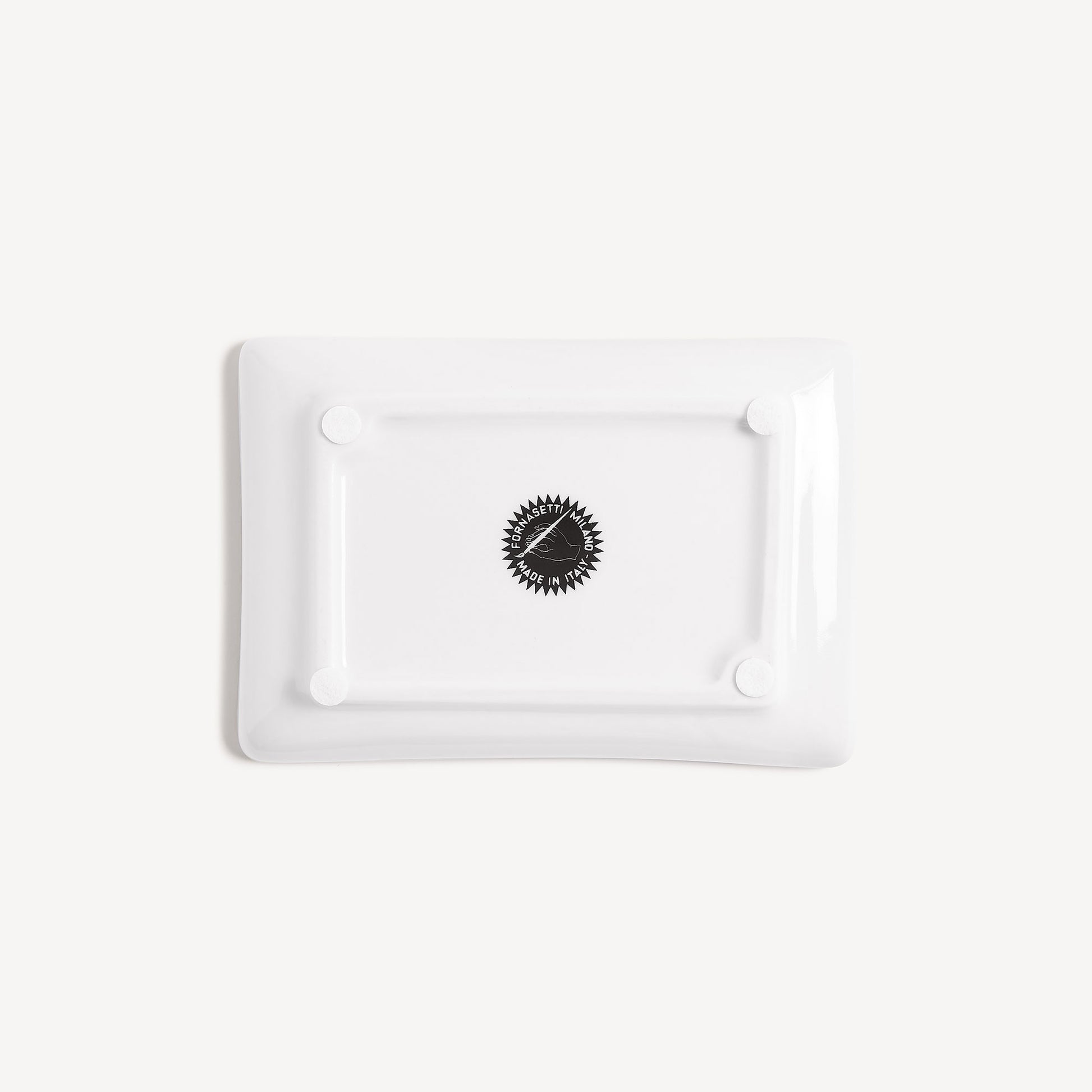- With this rectangular ashtray made of hand-decorated and painted porcelain, Fornasetti has succeeded in transforming an everyday object into a small work of art capable of seducing you with its decoration.