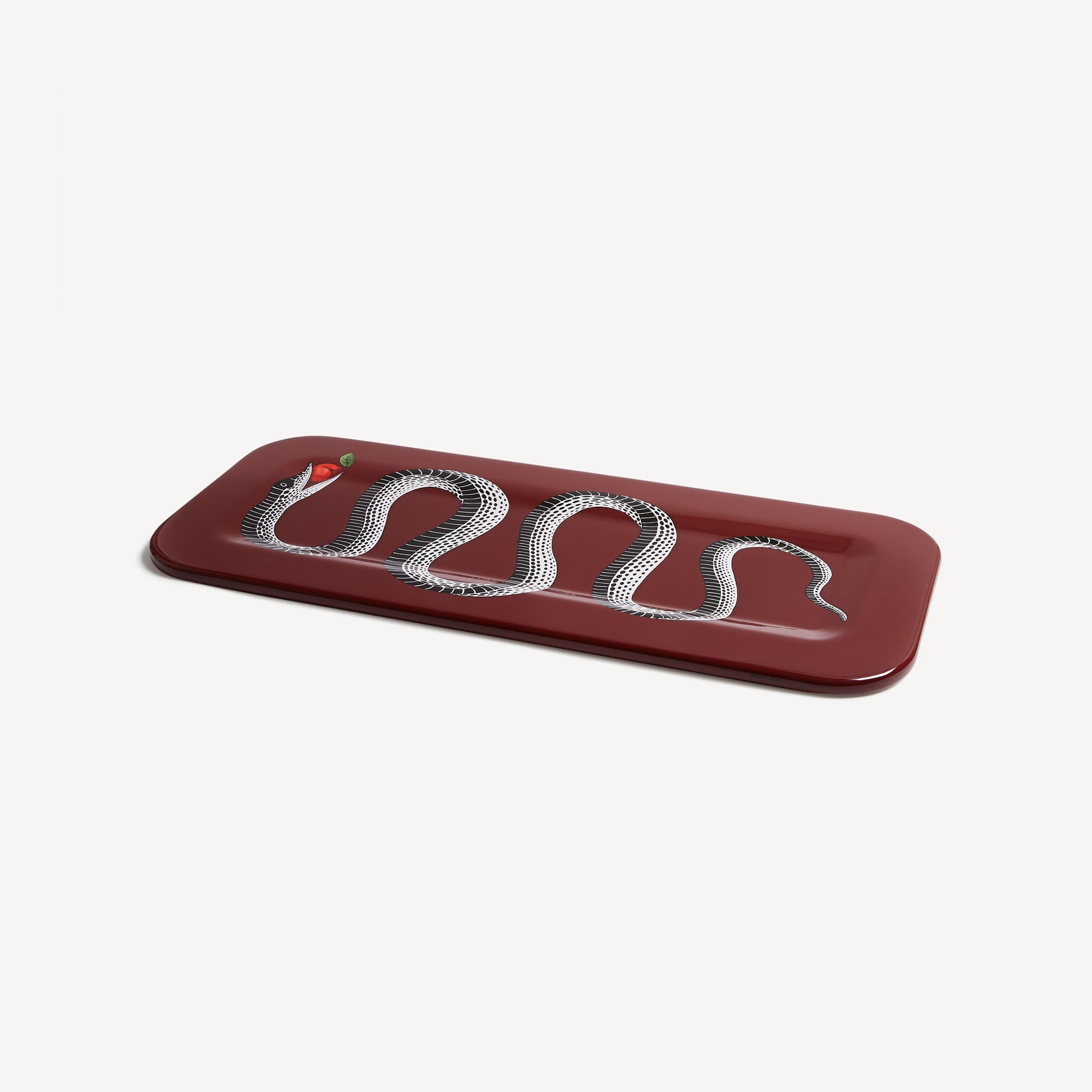 - The tray, with its surface similar to a sheet of paper, is the complement that best suits the Atelier's decorations. This hand-silkscreened and painted creation displays an eternal symbol of temptation and seduction. Combined with a foldable stand, the tray can be transformed into a coffee table.