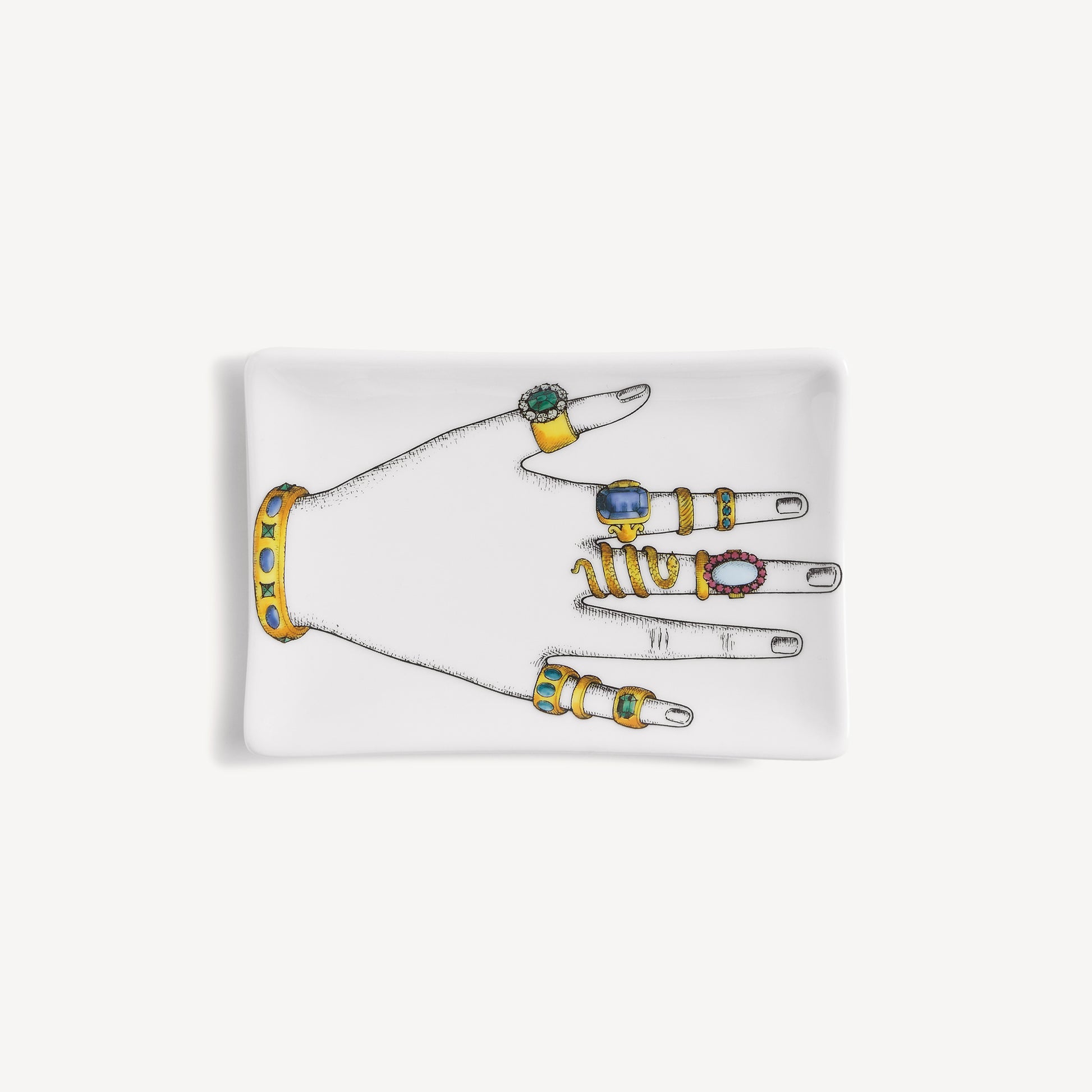 - With this rectangular ashtray made of hand-decorated porcelain, Fornasetti has succeeded in transforming an everyday object into a small work of art capable of seducing you with its decoration.