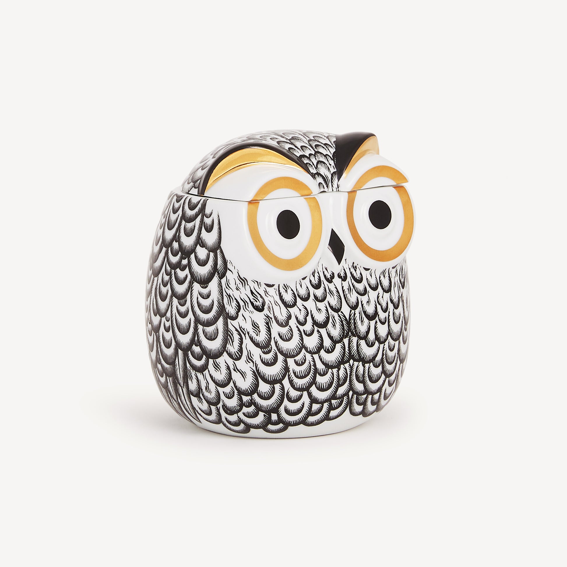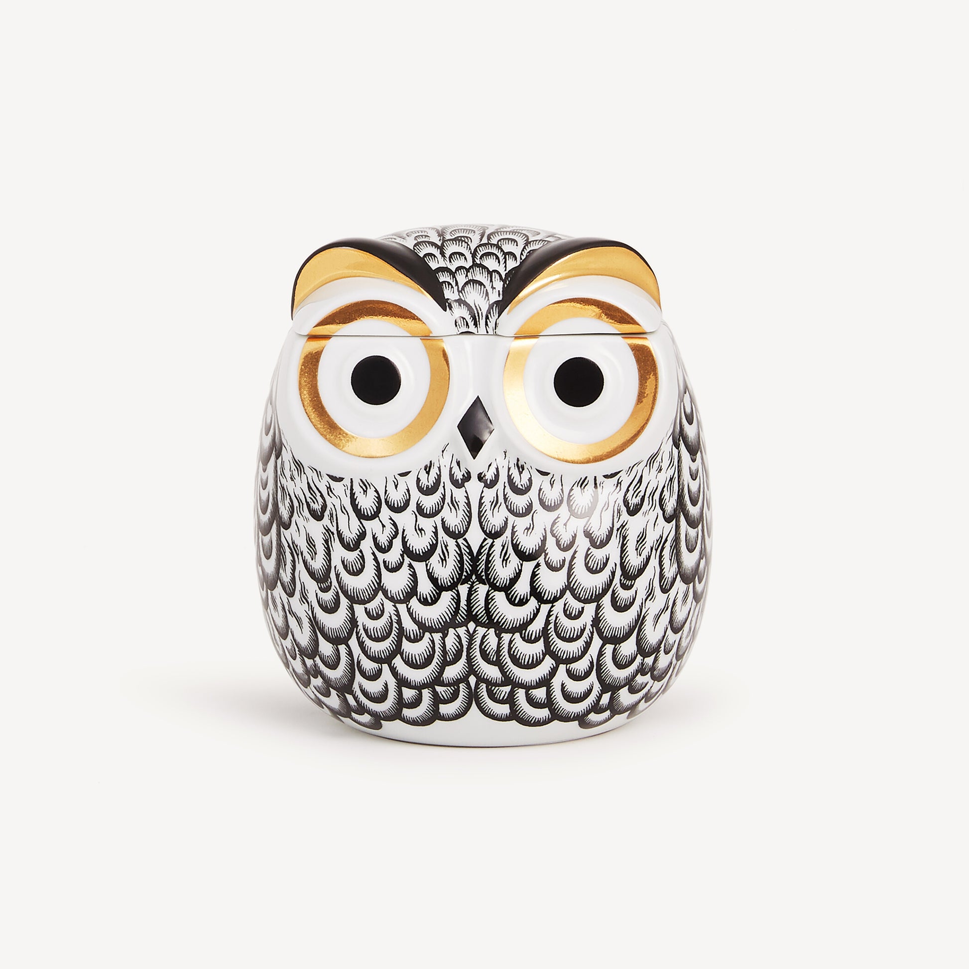 - A symbol of wisdom and foresight, the owl has always stimulated Fornasetti's imagination, and here it is presented in the form of a precious hand-decorated porcelain jar with gold accents.