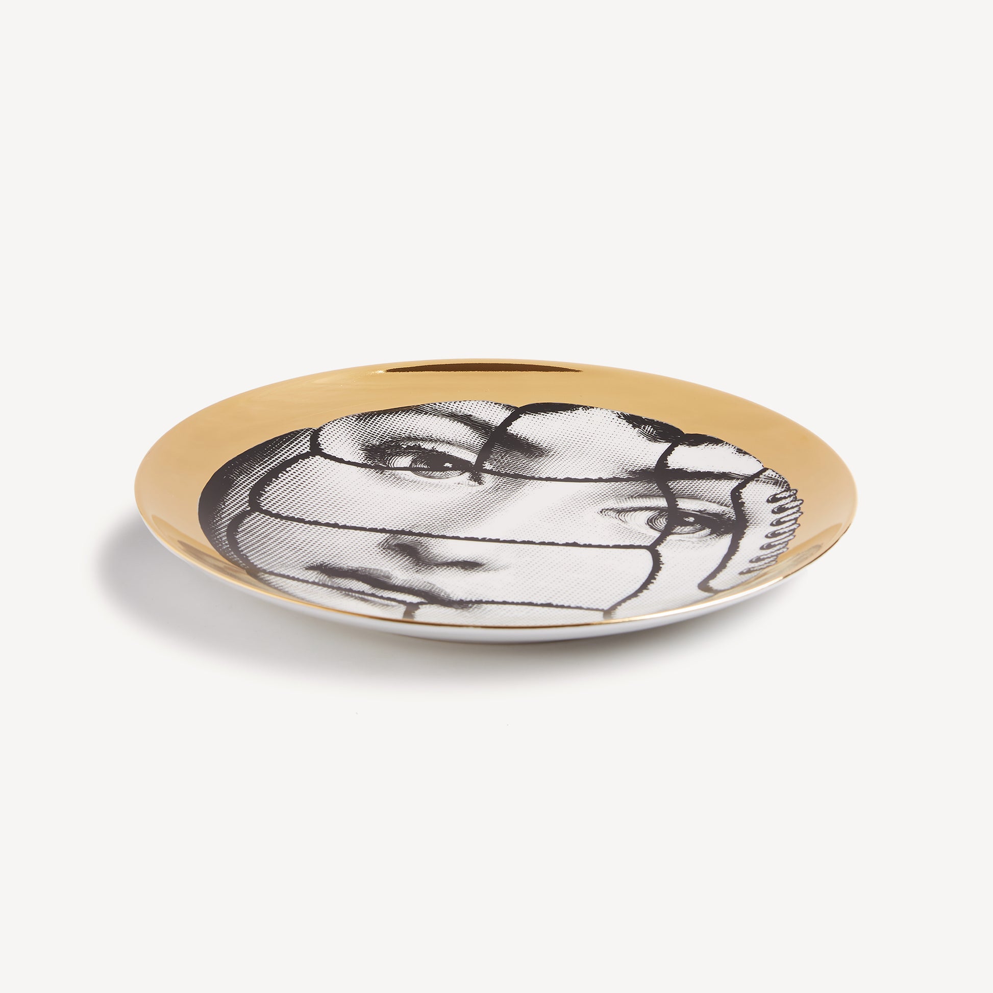 - Fornasetti's reinterpretations of opera singer Lina Cavalieri's face are the basis of the iconic Tema e Variazioni series and make this hand-decorated porcelain plate with gold accents a must-have object for collectors and lovers of art. You can use it as a wall plate, thanks to the two holes on the back, but also as an ornamental plate for table art. For cleaning, we recommend a damp cloth without any soaps or solvents.