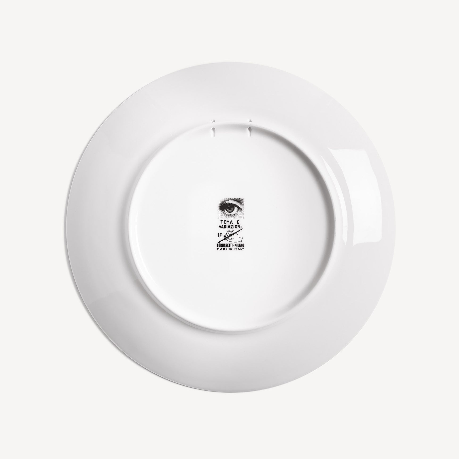 - The unmistakable features of Lina Cavalieri's face, playfully reinterpreted by Fornasetti, provide the inspiration for the Tema e Variazioni series to which this hand-decorated porcelain plate with gold accents belongs. A true collector's item, you can use this creation as a wall plate, thanks to the two holes on the back, but also as an ornamental piece for table art. For cleaning, we recommend a damp cloth without any soaps or solvents.