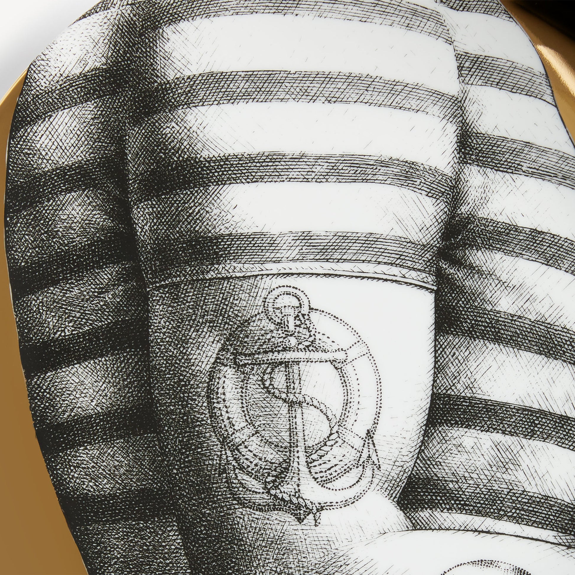 - The face of opera singer Lina Cavalieri, reinterpretated by Piero Fornasetti, adorns this hand-decorated porcelain plate with gold accents from the iconic Tema e Variazioni series. A true collector's item, you can use it as a wall plate, thanks to the two holes on the back, but also as an ornamental plate for table art. For cleaning, we recommend a damp cloth without any soaps or solvents.