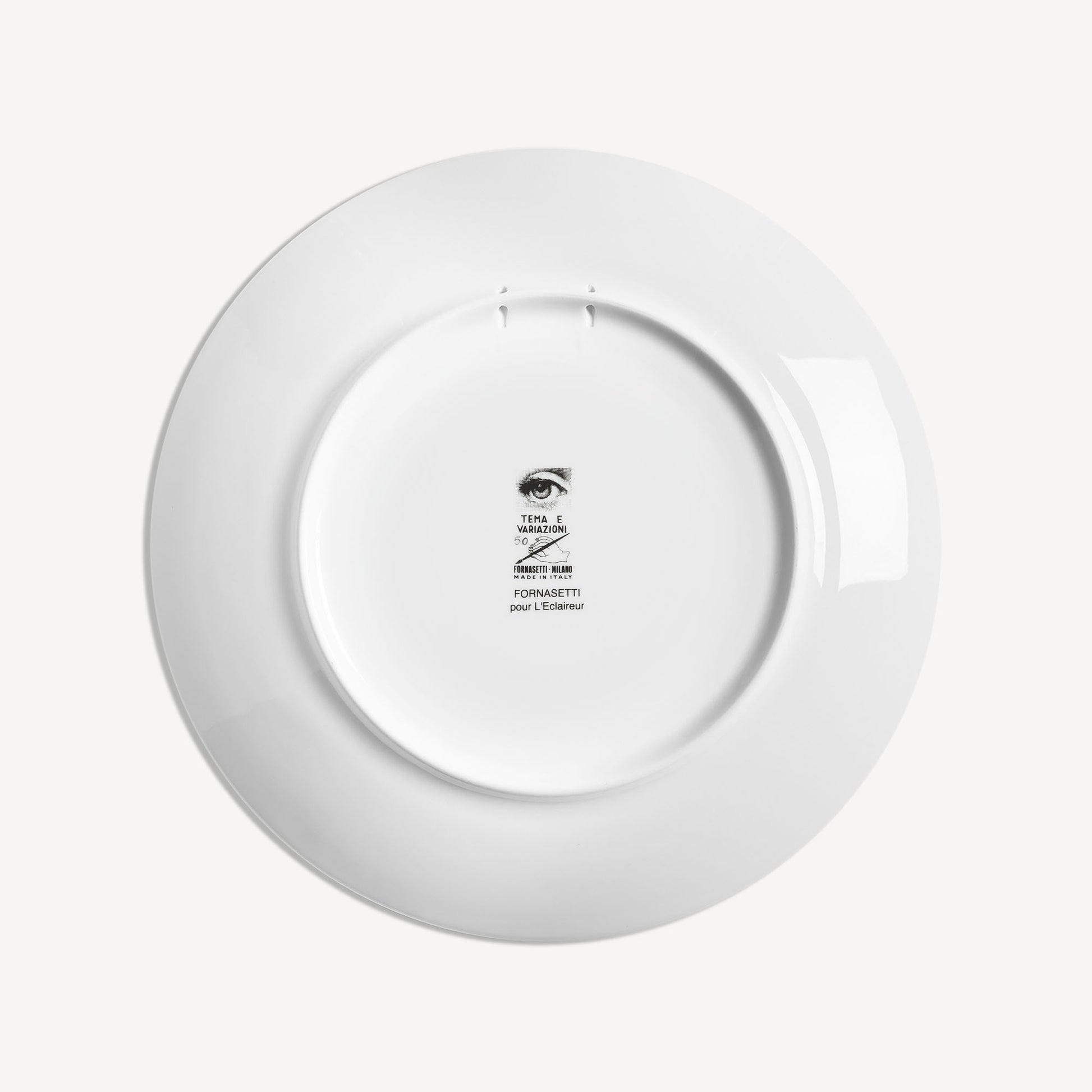 - The unmistakable features of Lina Cavalieri's face, playfully reinterpreted by Fornasetti, provide the inspiration for the Tema e Variazioni series, to which this hand-decorated porcelain plate belongs. A true collector's item, you can use this creation as a wall plate, thanks to the two holes on the back, but also as an ornamental piece for table art. For cleaning, we recommend a damp cloth without any soaps or solvents.
