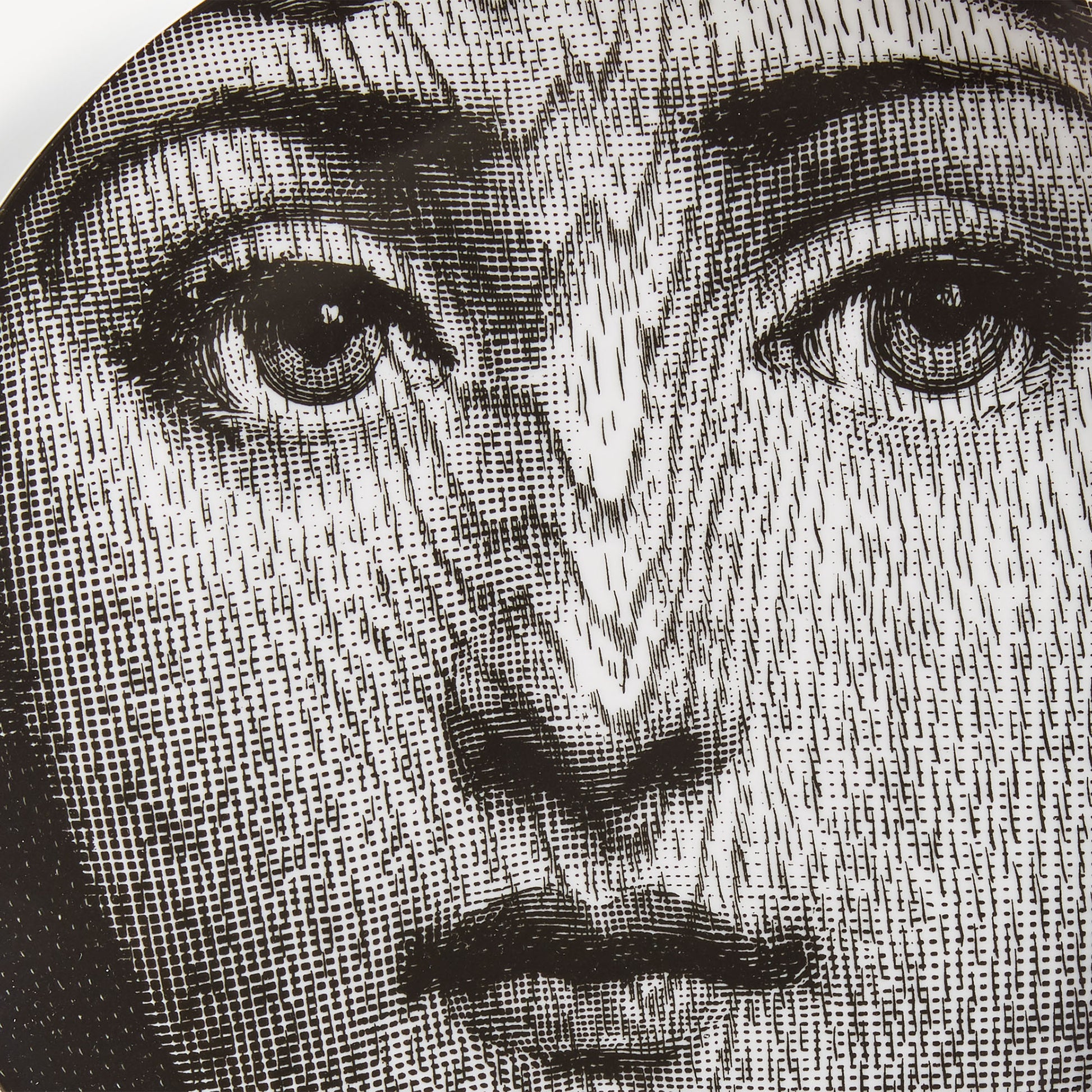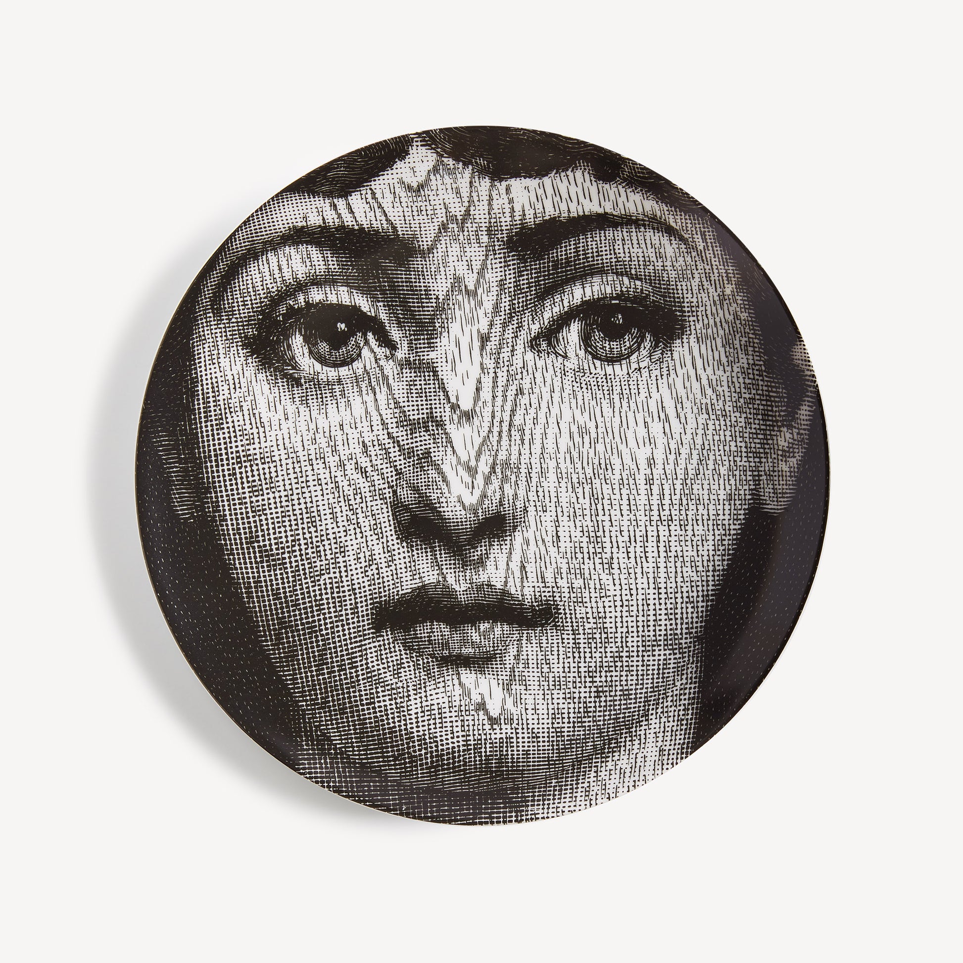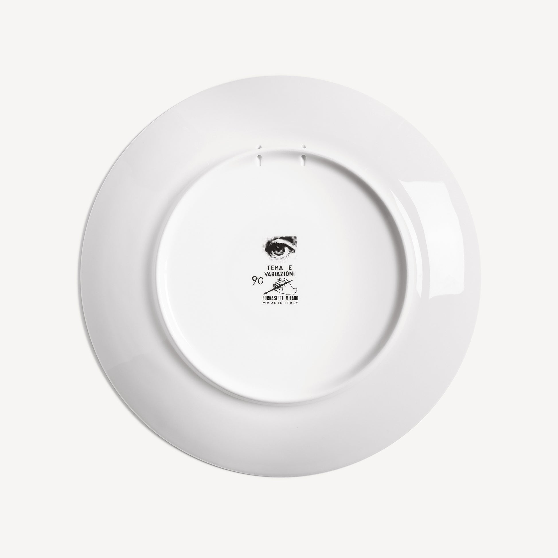 - The face of opera singer Lina Cavalieri, reinterpretated by Piero Fornasetti, adorns this hand-decorated porcelain plate from the iconic Tema e Variazioni series. A true collector's item, you can use it as a wall plate, thanks to the two holes on the back, but also as an ornamental plate for table art. For cleaning, we recommend a damp cloth without any soaps or solvents.