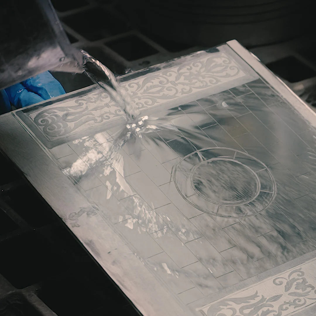 Working with glass becomes an opportunity to delve deeper each time, to explore and engage with different production techniques and transfer Fornasetti's passion for drawing onto glass.