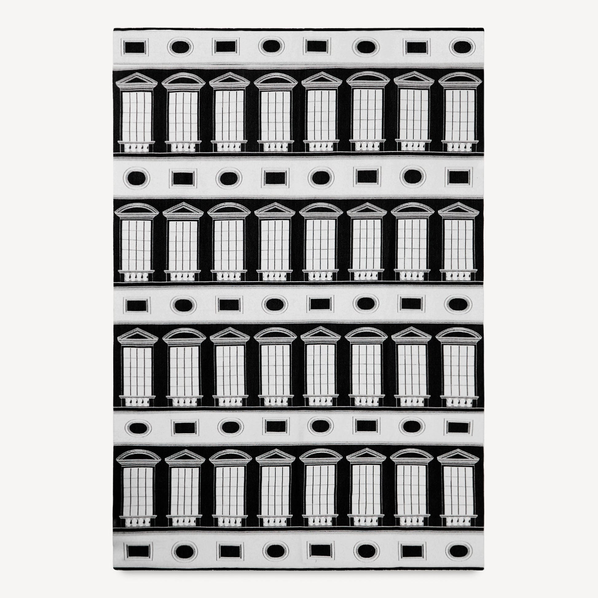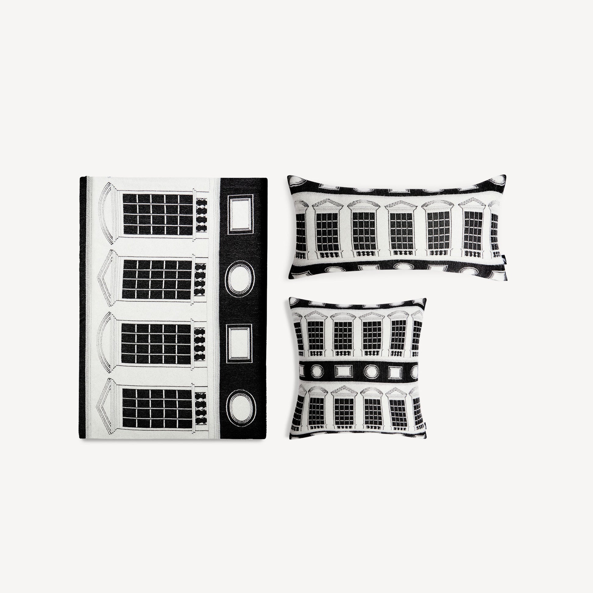 - Architecture, with its blend of art and technique, has always captivated Fornasetti. The precision of geometric lines harmonizes with the rectangular shape of this jacquard wool plaid, creating true visual metaphors.