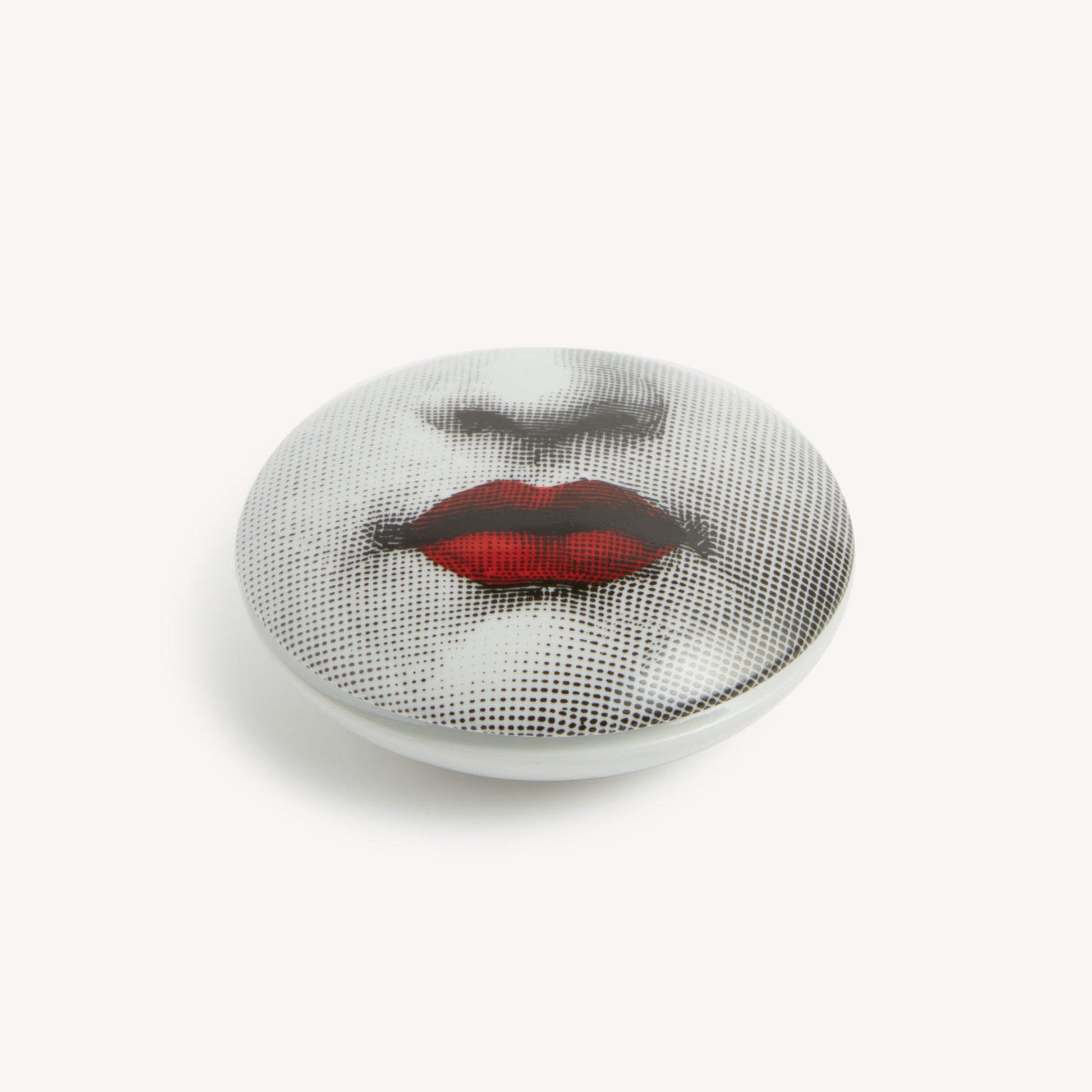 The sensual detail of Lina Cavalieri's lips reveals Fornasetti’s more eccentric, pop spirit.