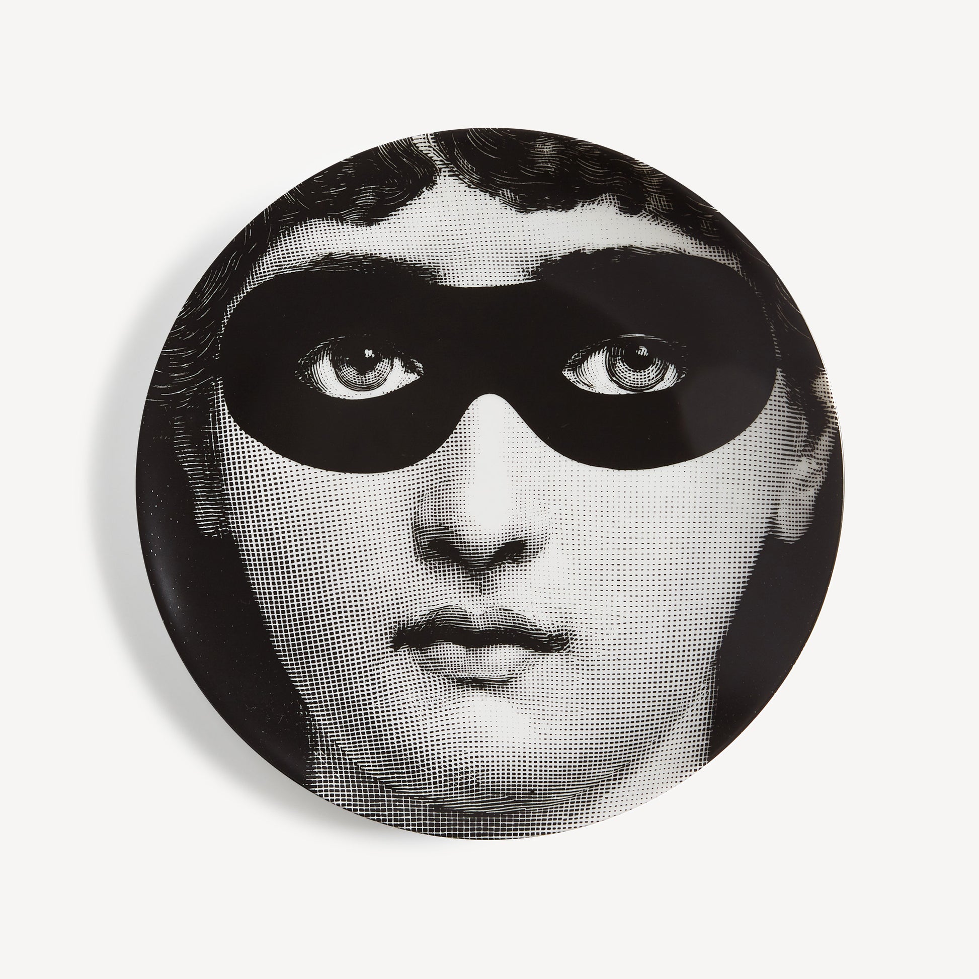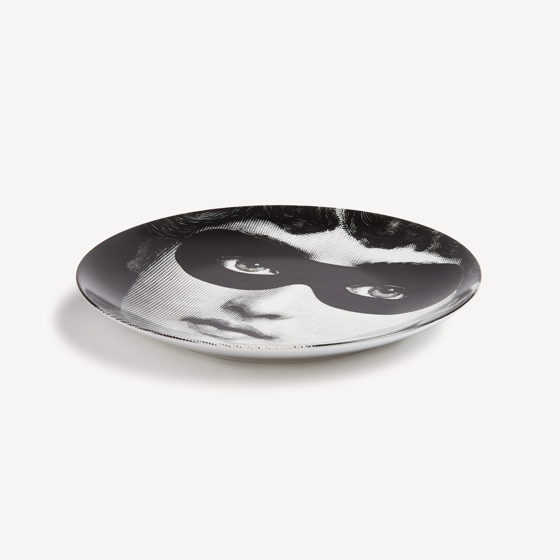 - The face of opera singer Lina Cavalieri, the iconic subject of countless reinterpretations by Piero Fornasetti, adorns this hand-decorated porcelain plate from the Tema e Variazioni series. A true collector's item, you can use it as a wall plate, thanks to the two holes on the back, but also as an ornamental plate for table art. For cleaning, we recommend the use of a damp cloth without any soaps or solvents.