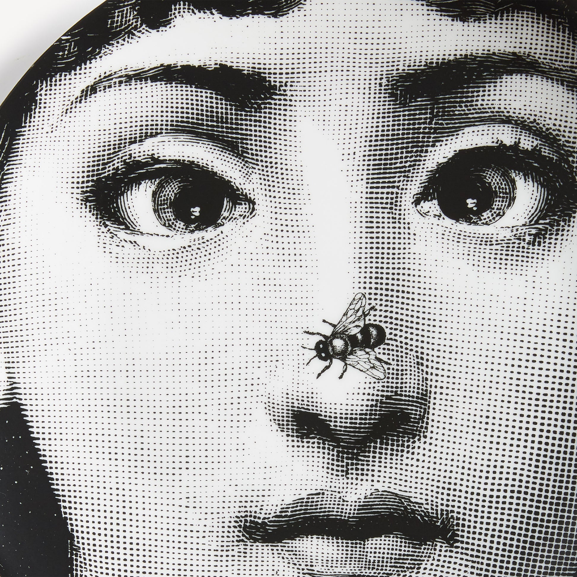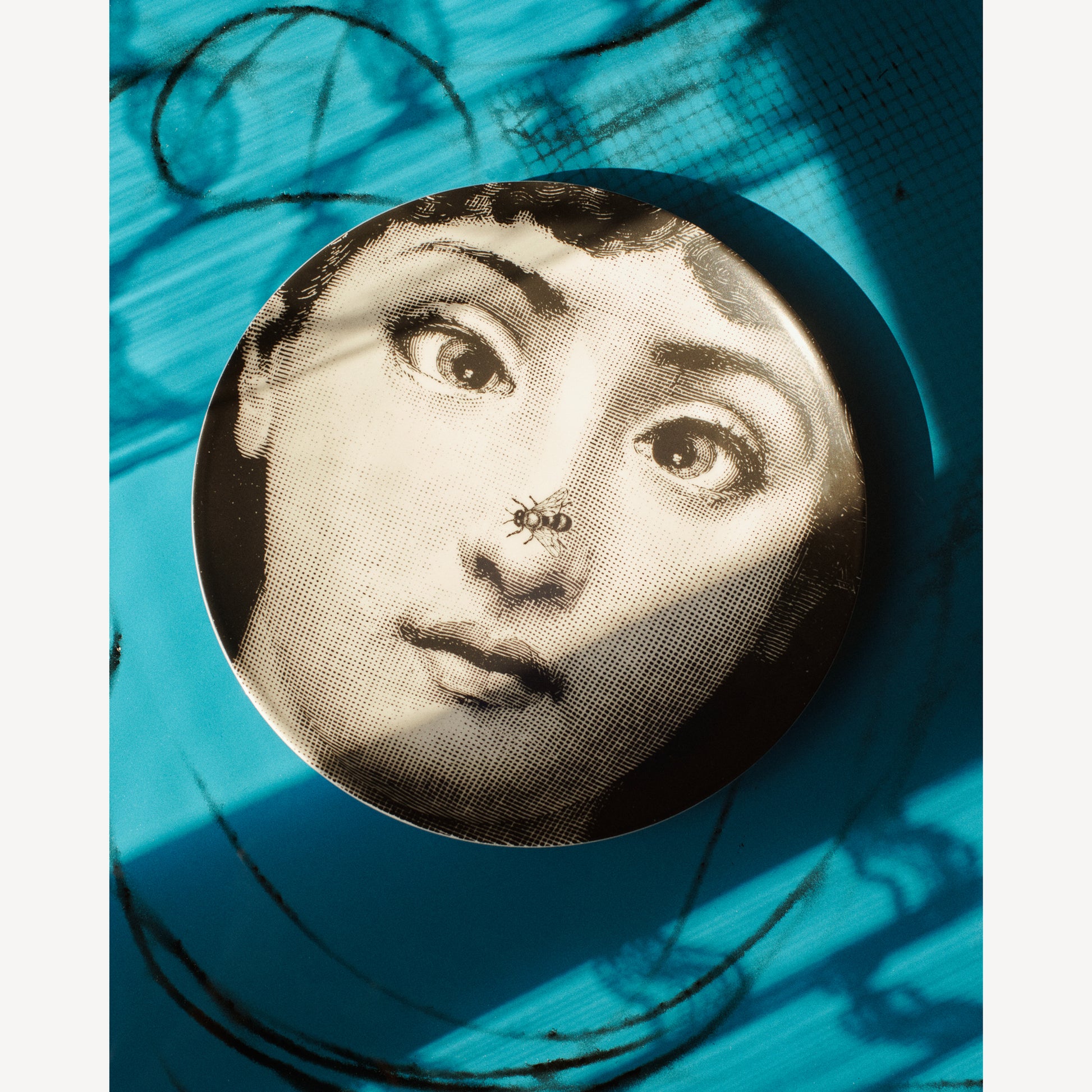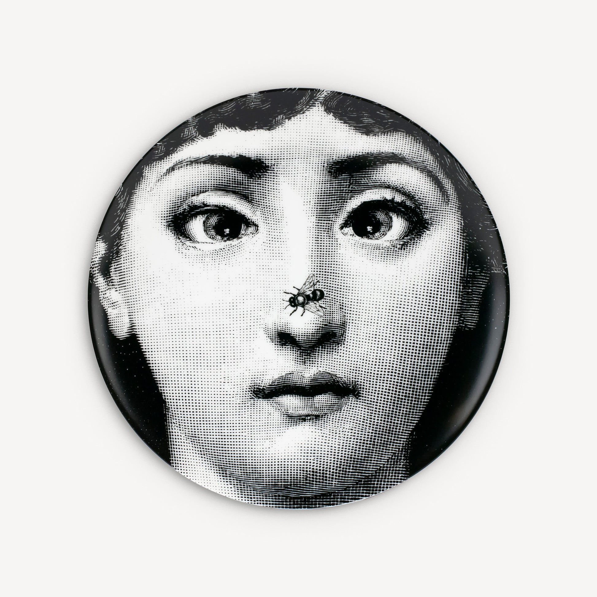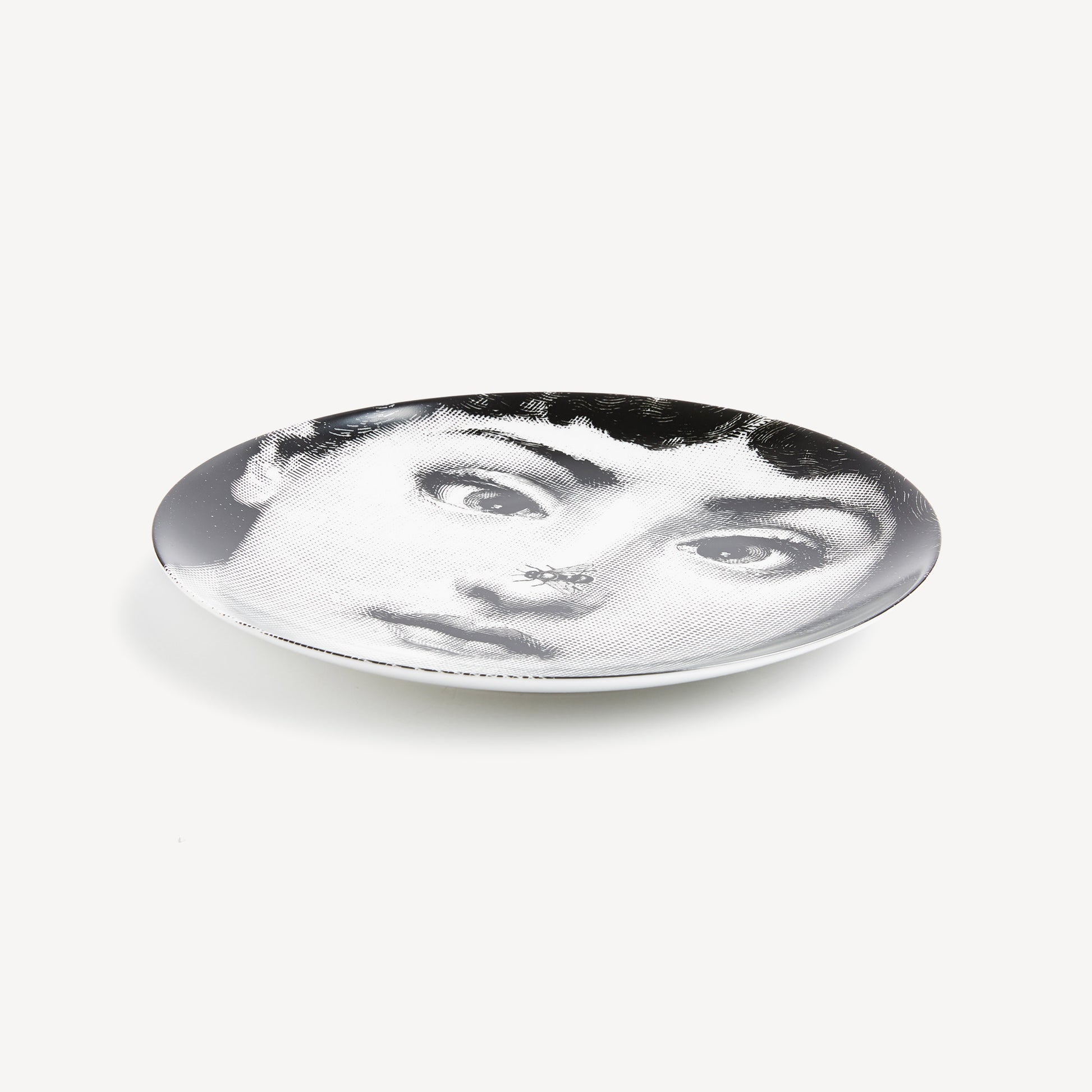 - The face of the opera singer Lina Cavalieri, the iconic protagonist of countless reinterpretations by Piero Fornasetti, embellishes this hand-decorated porcelain plate which belongs to the series Tema e Variazioni: a true collector's item, you can use it as a wall plate, thanks to the presence of two holes on the back, but also as an artistic ornament for your table. For cleaning, we recommend a damp cloth without any soaps or solvents.