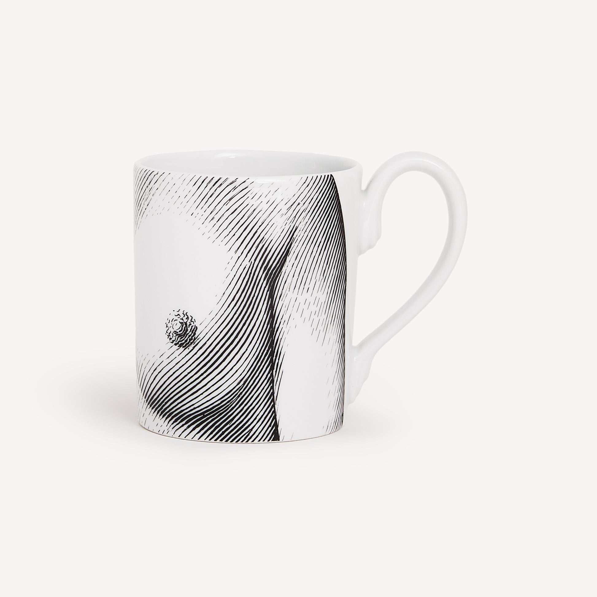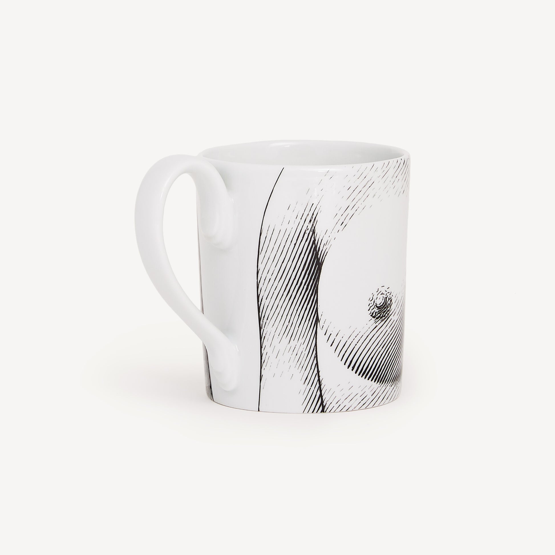 - A provocative anatomical design adorns this hand-decorated porcelain cup, transferring Fornasetti's imagery to an object for daily use and thereby transforming it into a collector's item.