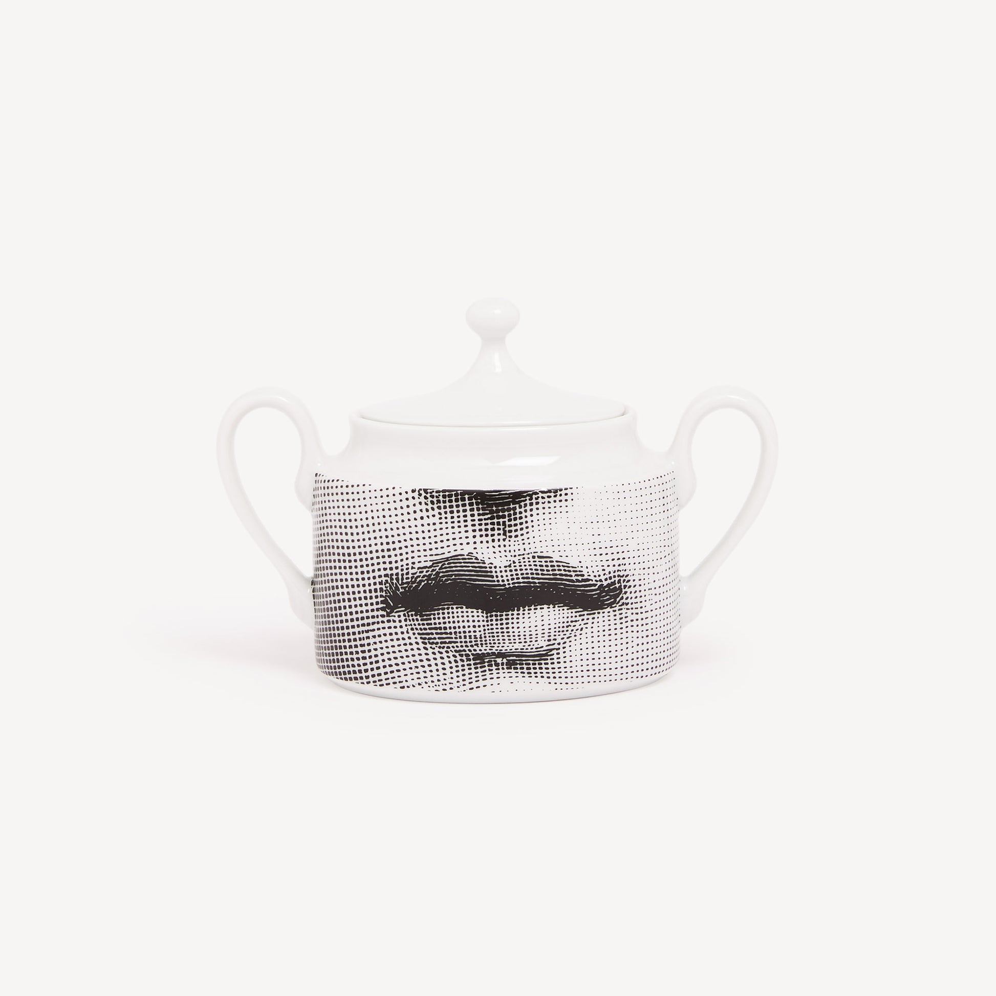 - Lina Cavalieri's mouth seems to be smiling upon this hand-decorated porcelain sugarbowl, transferring Fornasetti's imagery to an object for daily use and thereby transforming it into a collector's item.