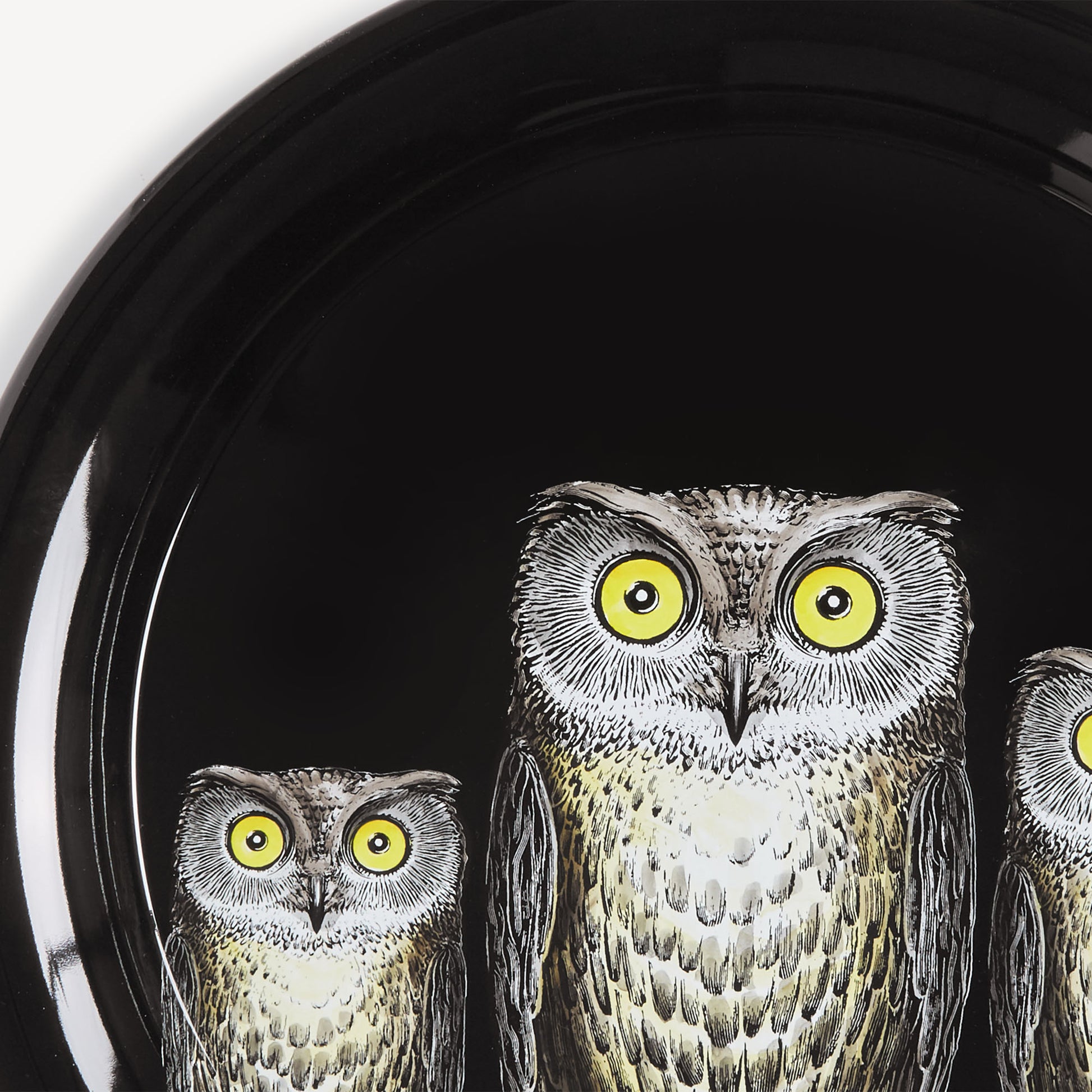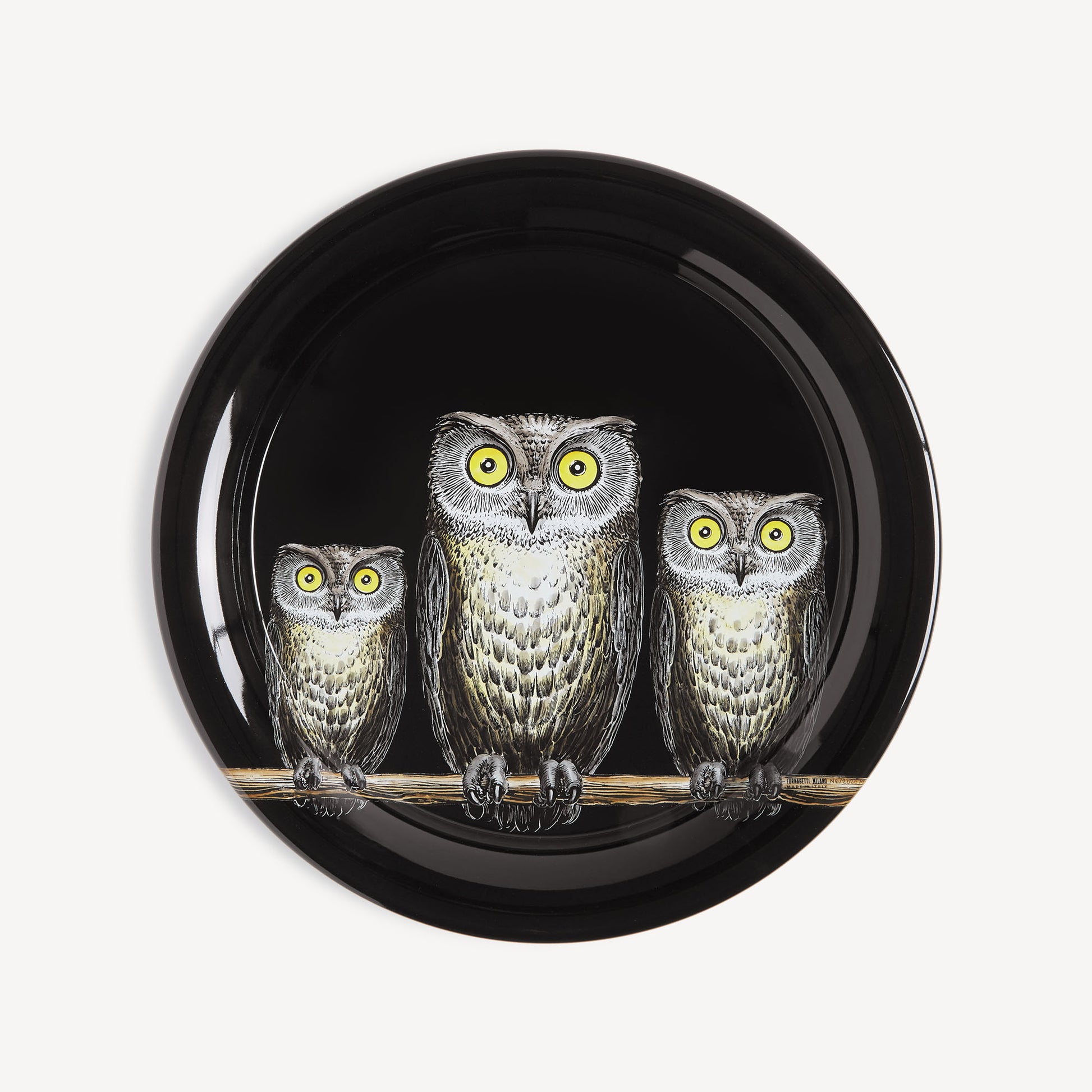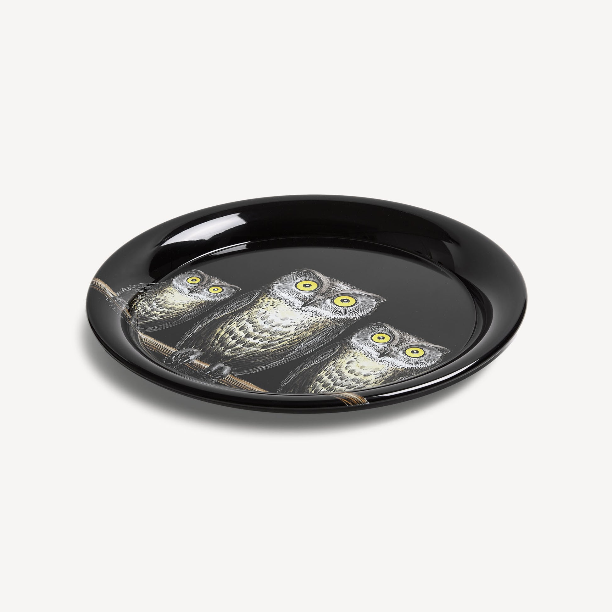 - The tray, with its surface similar to a sheet of paper, is the complement that best suits the Atelier's decorations. This hand-silkscreened, painted, and lacquered creation is embellished with the design of owls, an animal symbolising foresight. Combined with a foldable stand, the tray can be transformed into a coffee table.