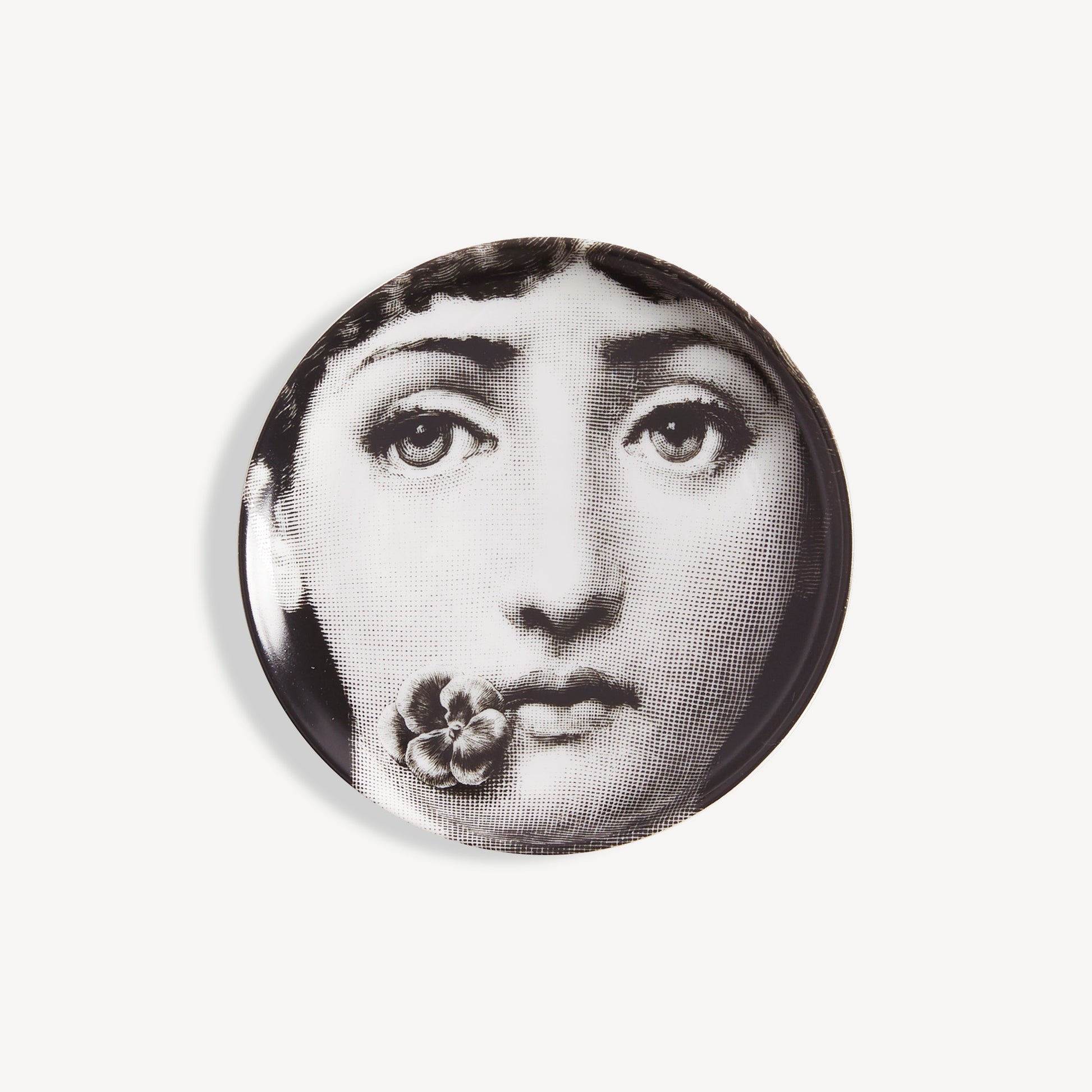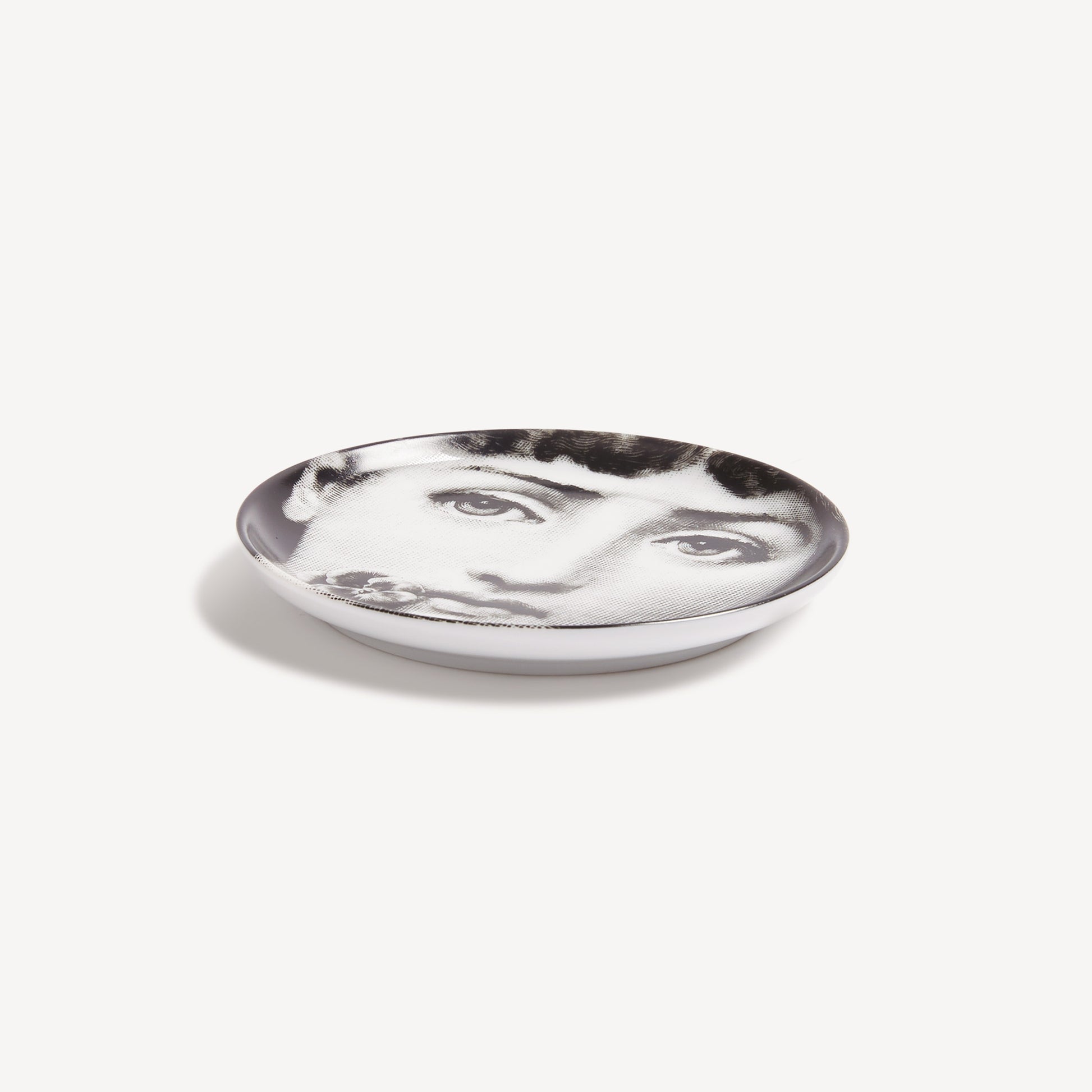 - The round shape of this decorative holder frames Lina Cavalieri's features in one of the innumerable interpretations Fornasetti dedicated to her in the Tema e Variazioni series.