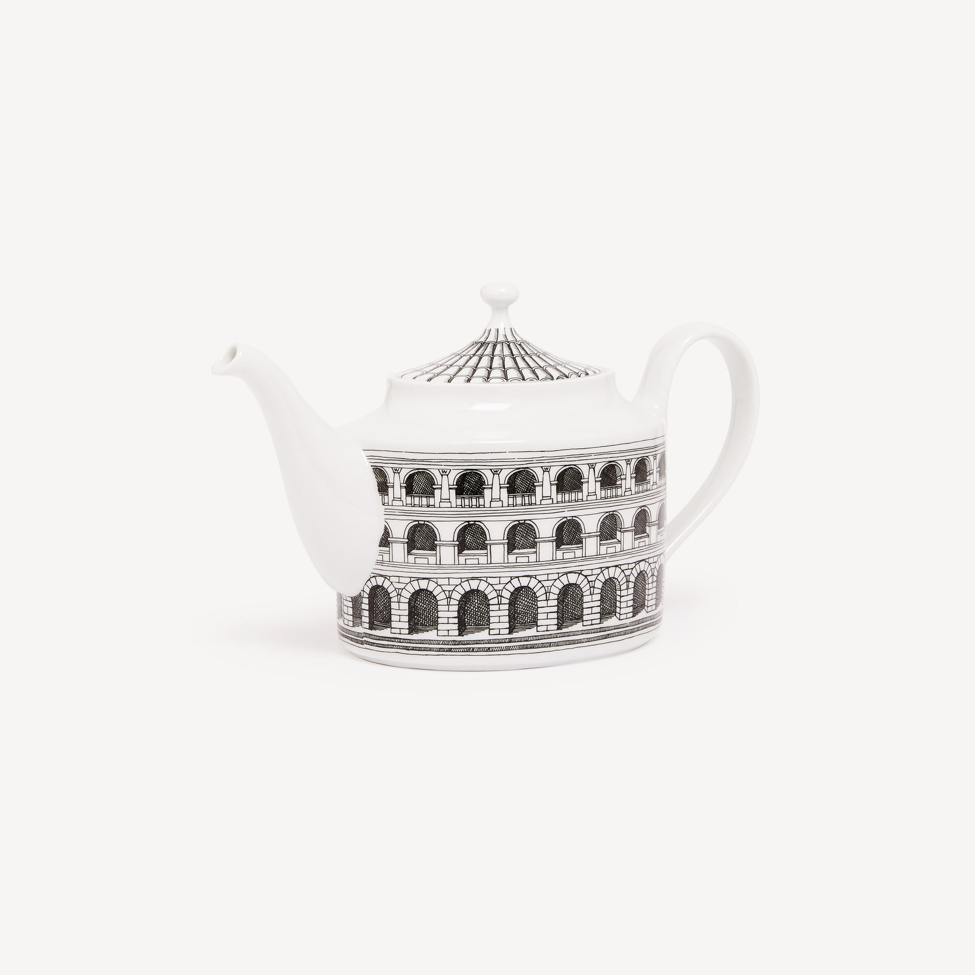 - Architectural designs are a beloved and recurring element in Fornasetti's work: this hand-decorated porcelain teapot renders a moment of quotidian pleasure iconic.