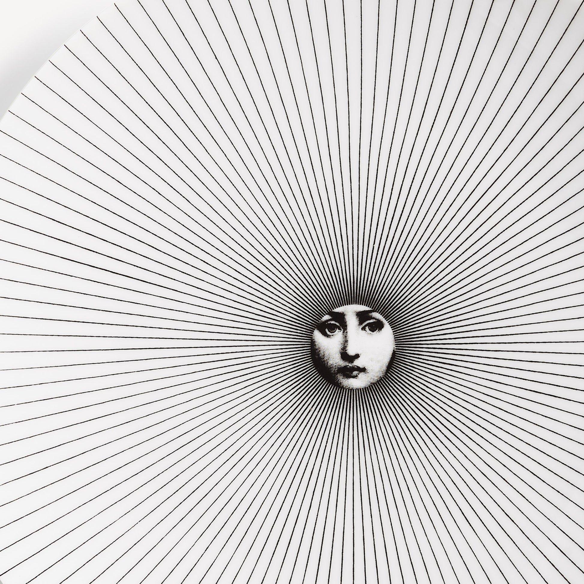 - The unmistakable features of Lina Cavalieri's face, playfully reinterpreted by Fornasetti, provide the inspiration for the Tema e Variazioni series to which this hand-decorated porcelain plate belongs. A true collector's item, you can use this creation as a wall plate, thanks to the two holes on the back, but also as an ornamental piece for table art. For cleaning, we recommend a damp cloth without any soaps or solvents.