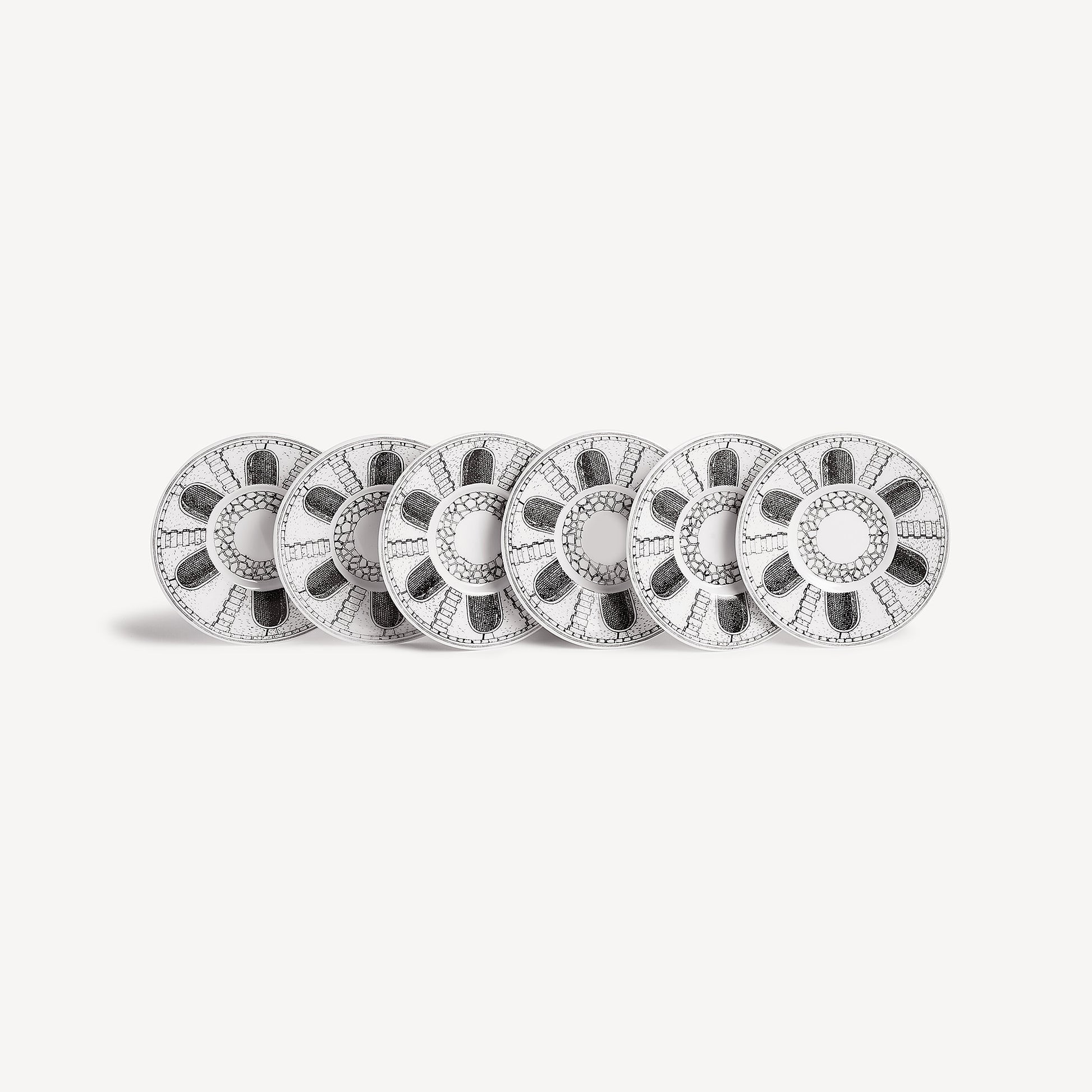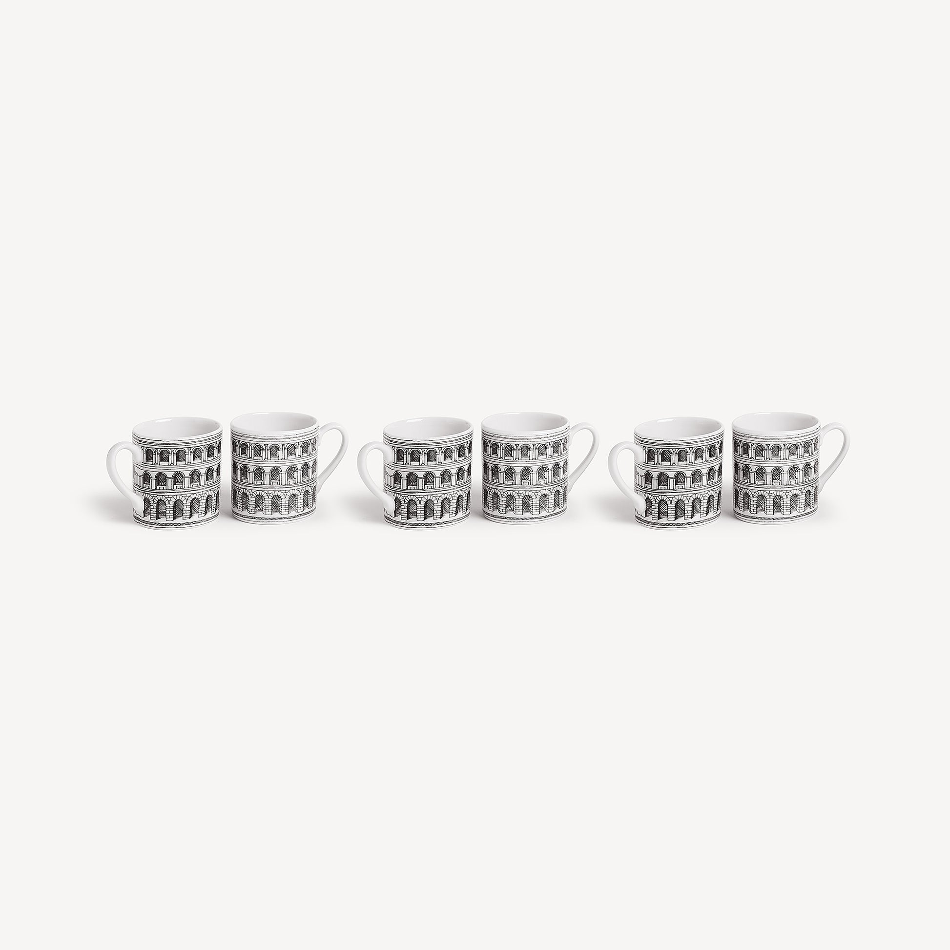 - Architectural designs are a beloved and recurring element in Fornasetti's work: this set of hand-decorated porcelain coffee cups is a collector's ensemble dedicated to all those who love beauty.