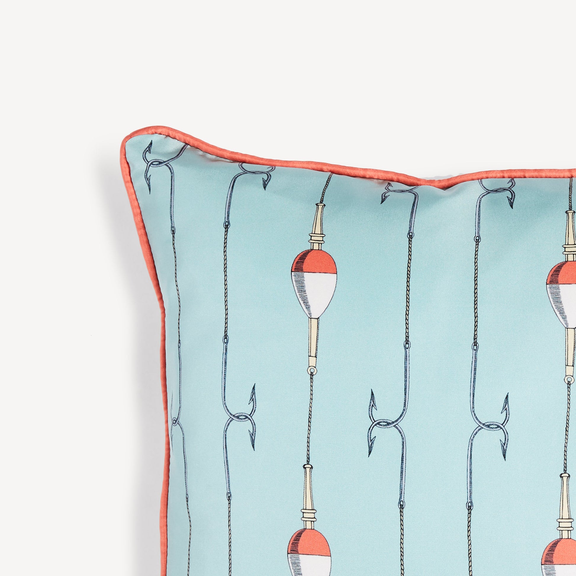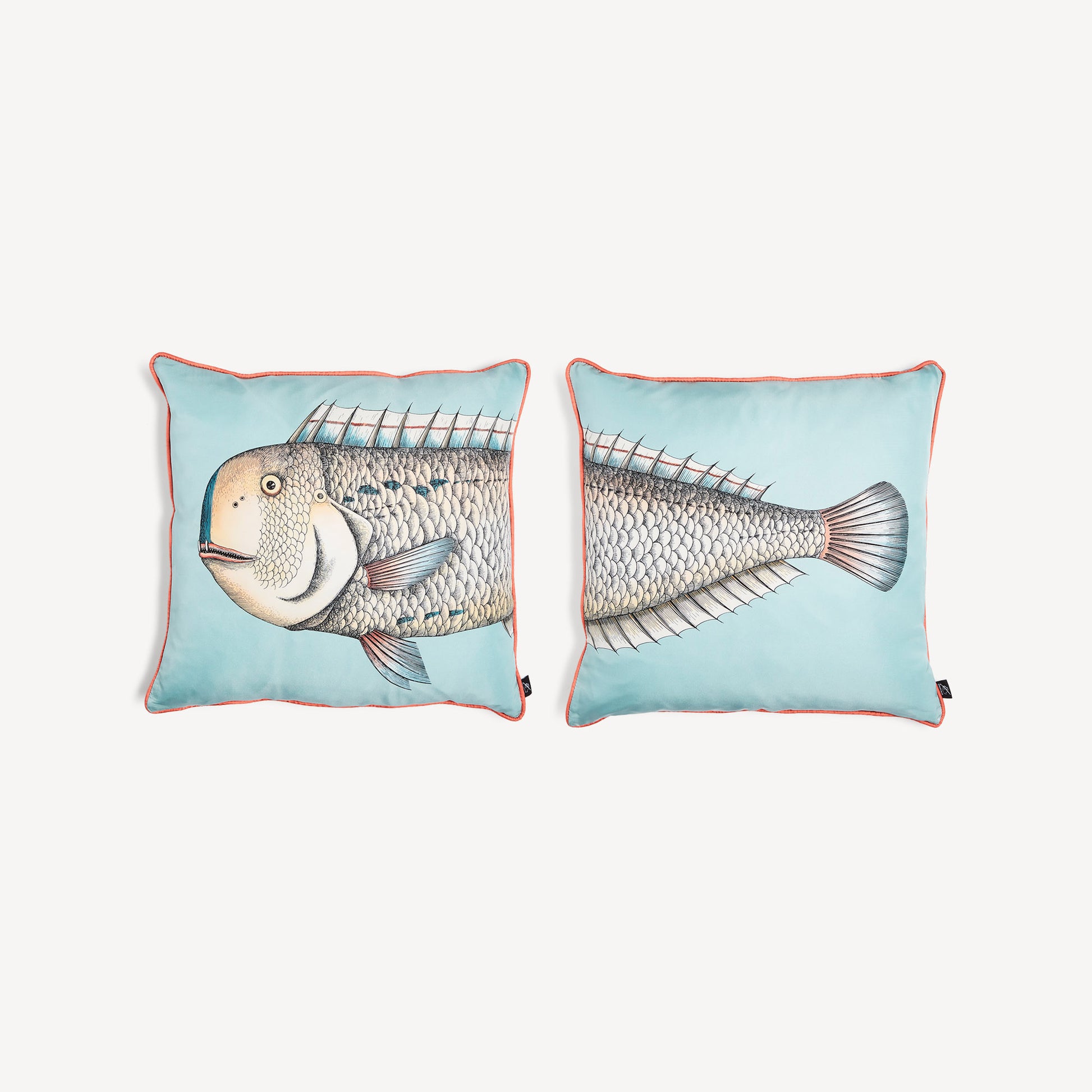 - This set consists of two cushions with removable silk covers that divide the surreal image of a lampuga, a fish decoration close to Piero Fornasetti's heart, in half. You can increase the surprising effect at will by arranging them closer together or further apart.