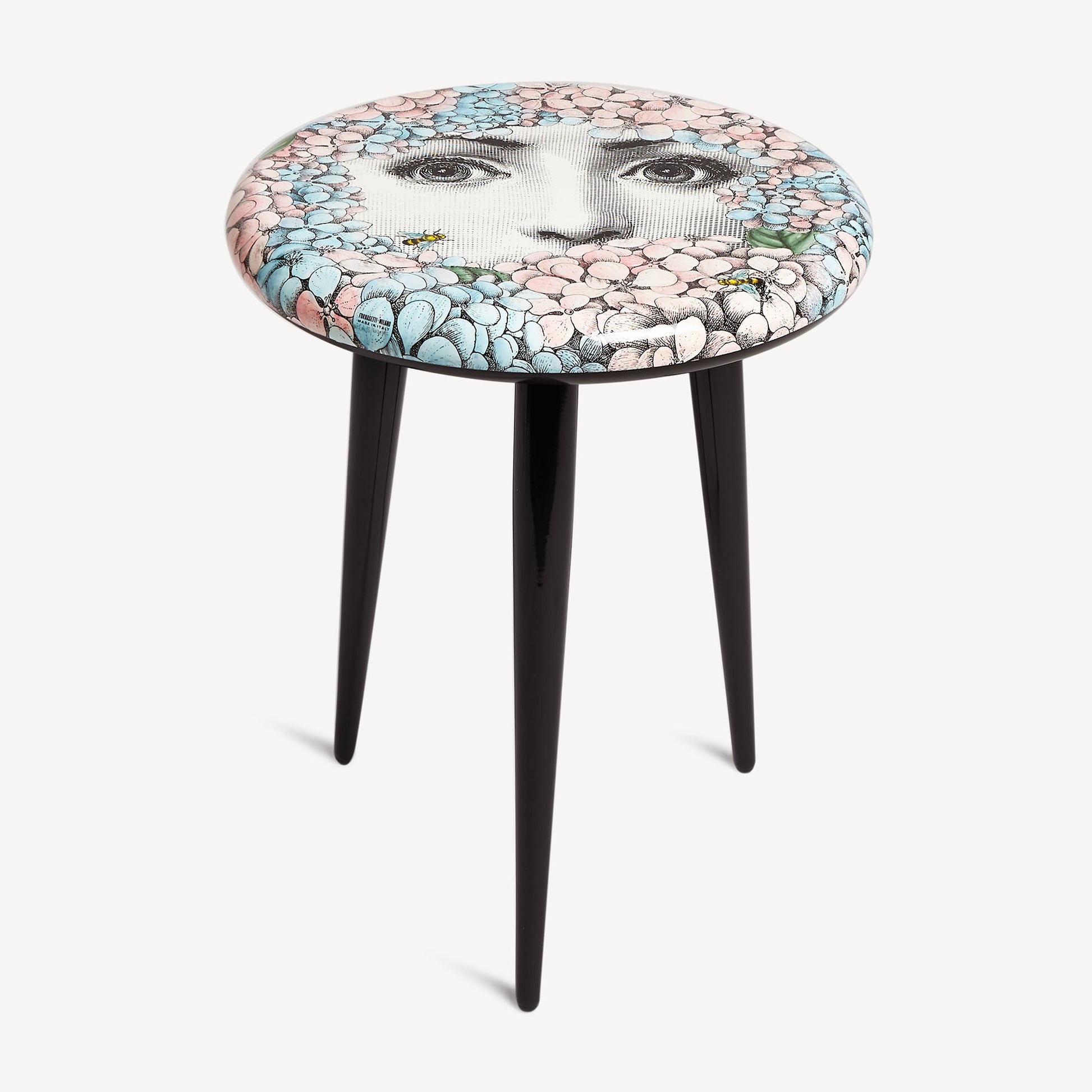 - A hydrangea bush frames Lina Cavalieri's face on the seat of this hand-silkscreened, painted, and lacquered stool, fitted with solid wooden legs. A piece of true character in any space.