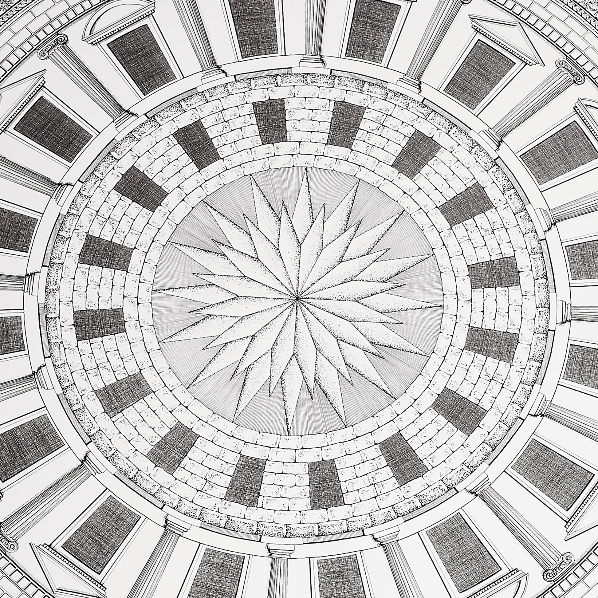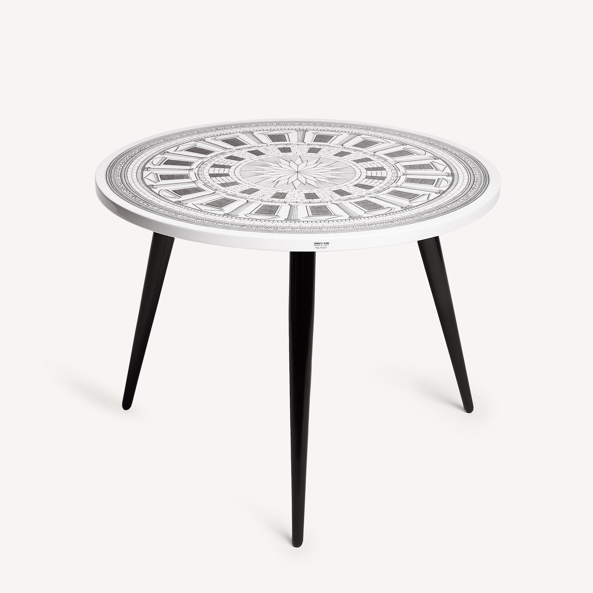 - The decoration of this hand-silkscreened coffee table with solid wood legs and protected by extra-clear glass is a daring play on perspective. A complement that brings Fornasetti's taste for architectural forms to every room.