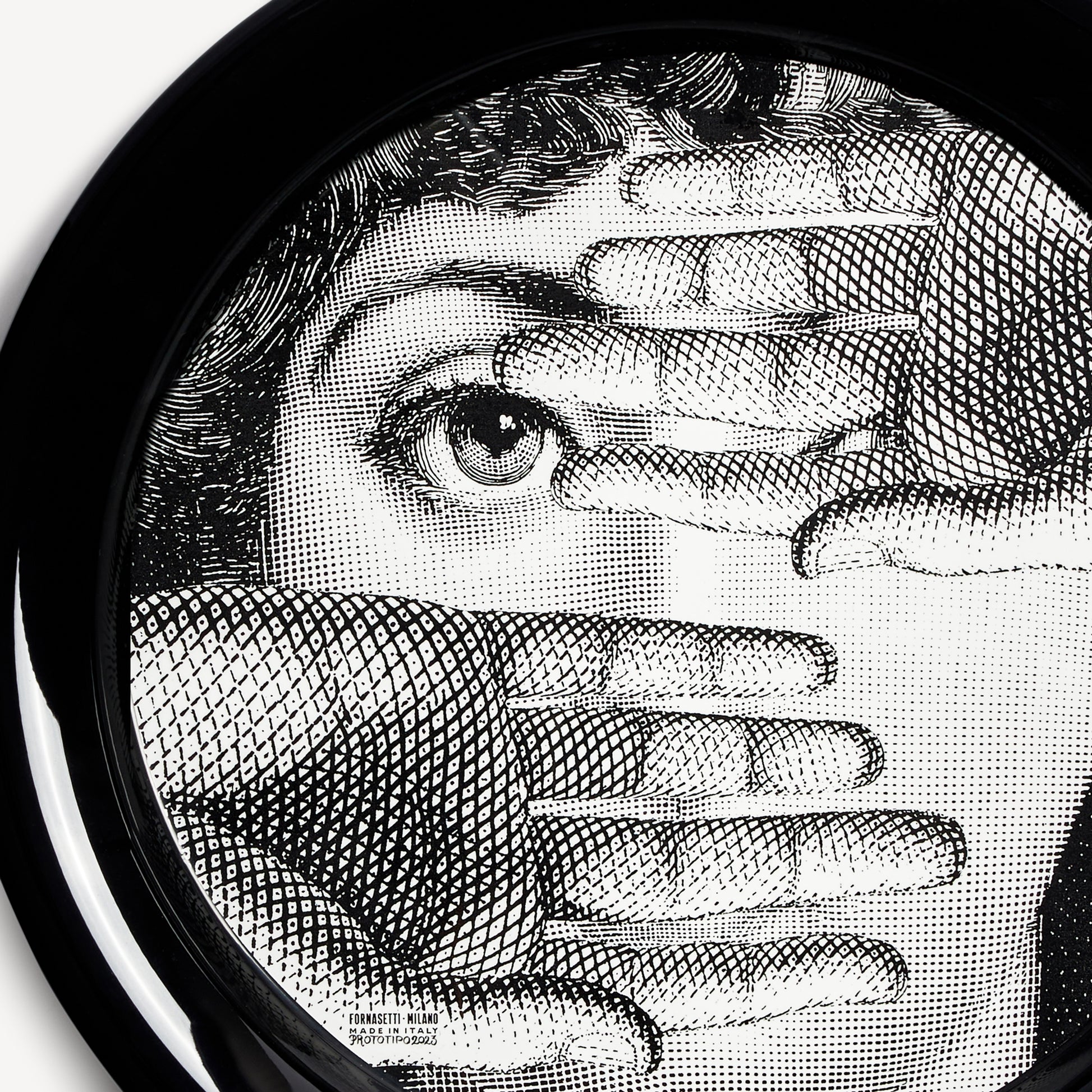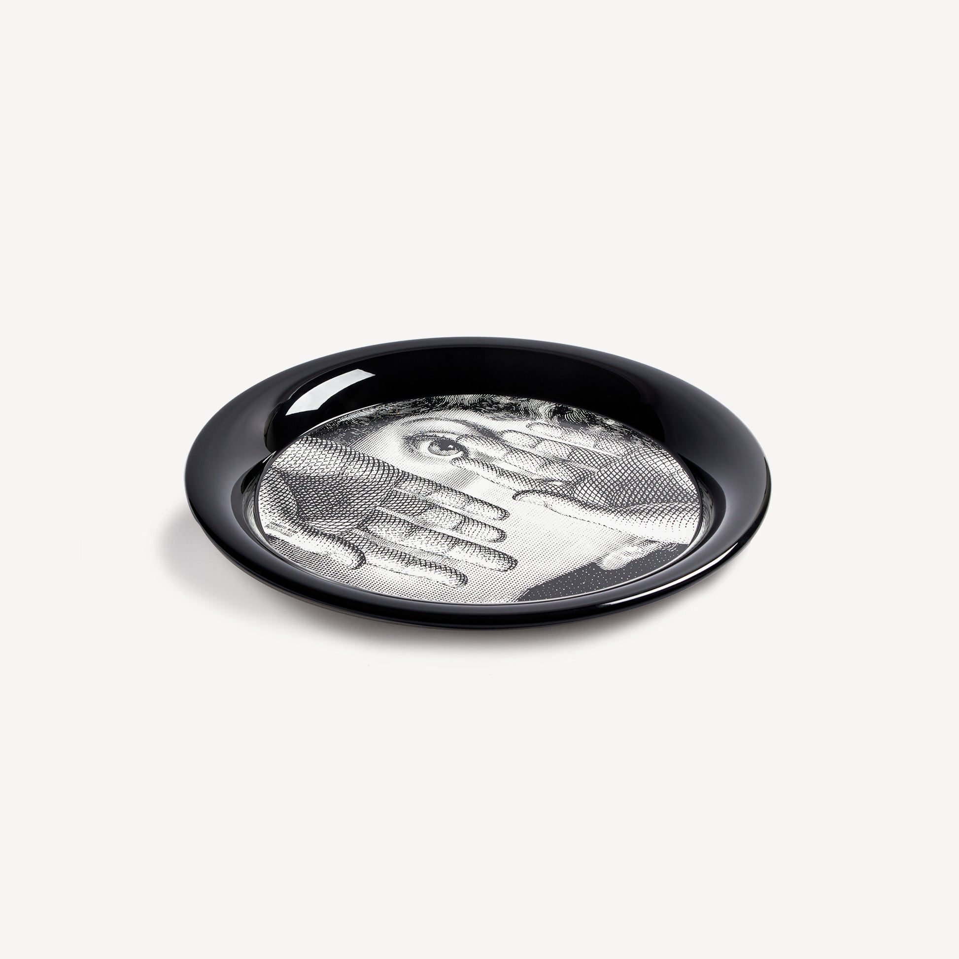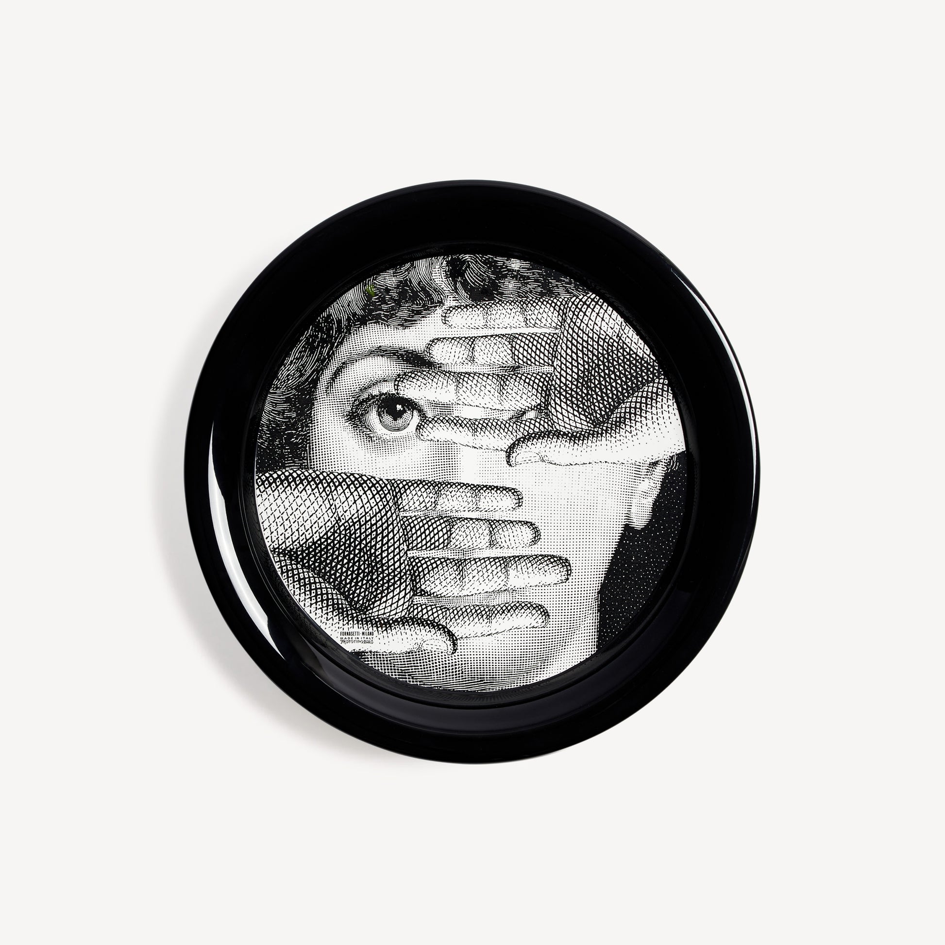 - The circular shape and flat surface of Fornasetti trays highlight the features of the opera singer Lina Cavalieri, the iconic figure central to the Atelier's imagery, whose face adorns this series of hand-decorated metal trays in the Tema e Variazioni collection. When paired with a folding stand, the tray can be transformed into a small table.