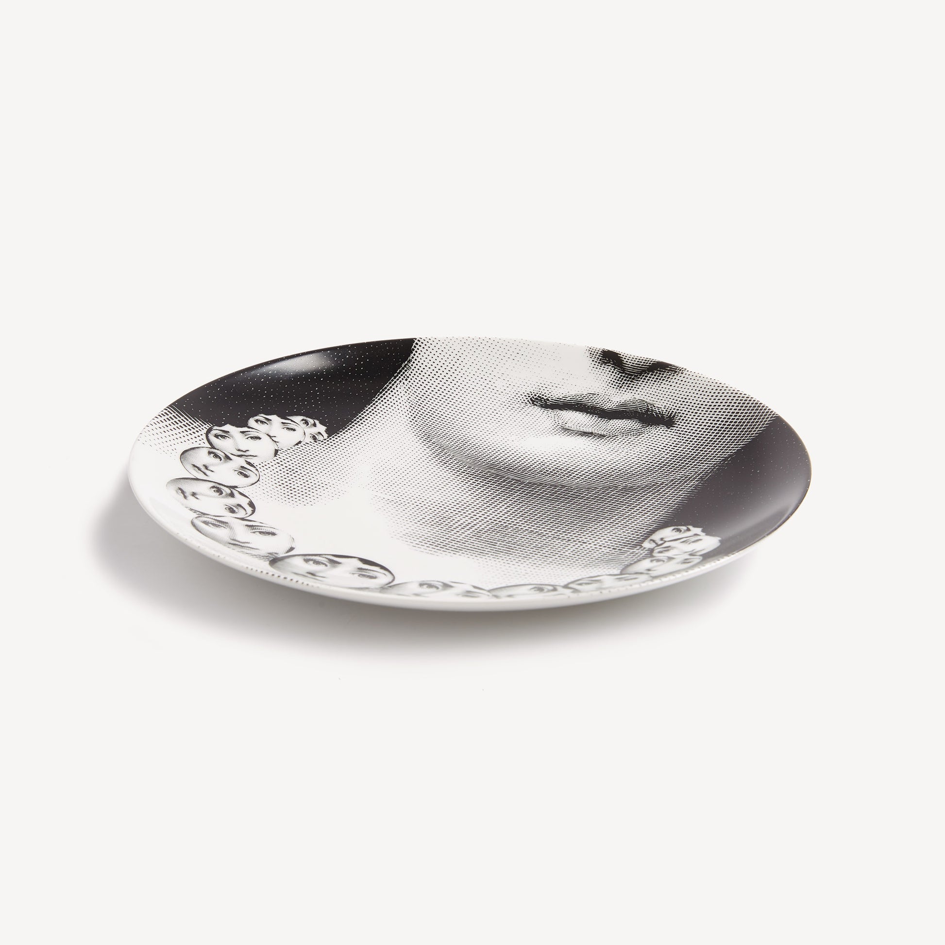 - The unmistakable features of Lina Cavalieri's face, playfully reinterpreted by Fornasetti, provide the inspiration for the Tema e Variazioni series, to which this hand-decorated porcelain plate belongs. A true collector's item, you can use this creation as a wall plate, thanks to the two holes on the back, but also as an ornamental piece for table art. For cleaning, we recommend a damp cloth without any soaps or solvents.