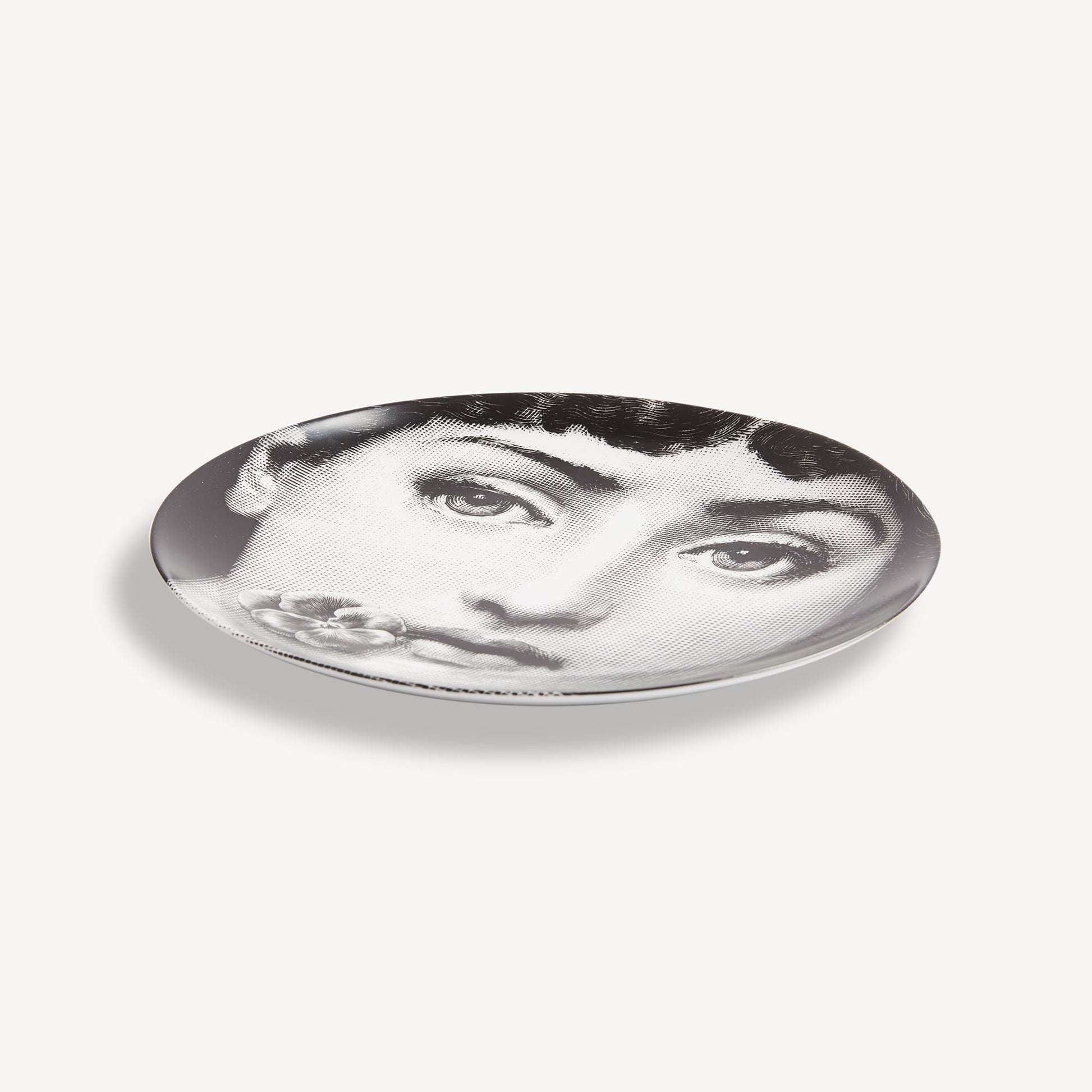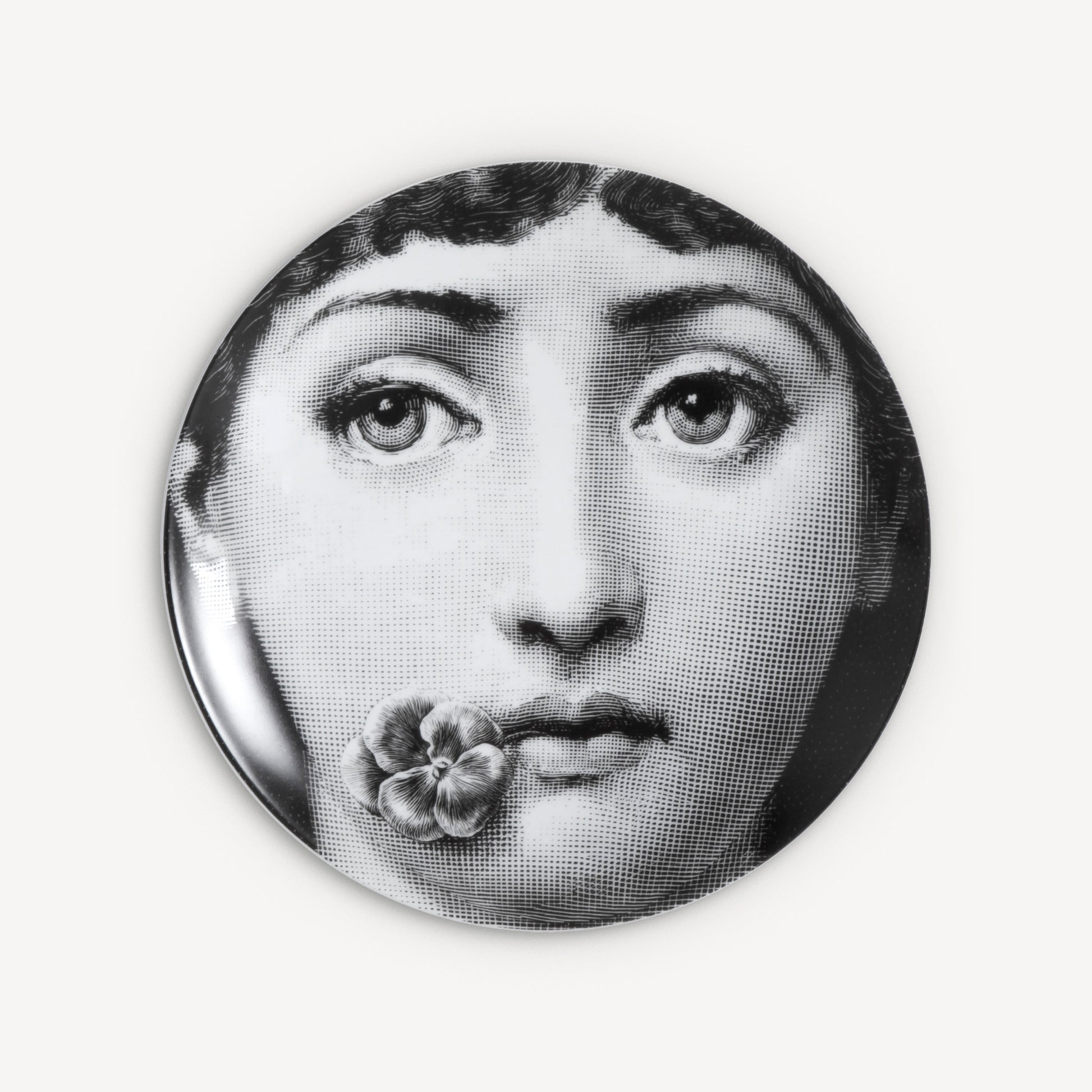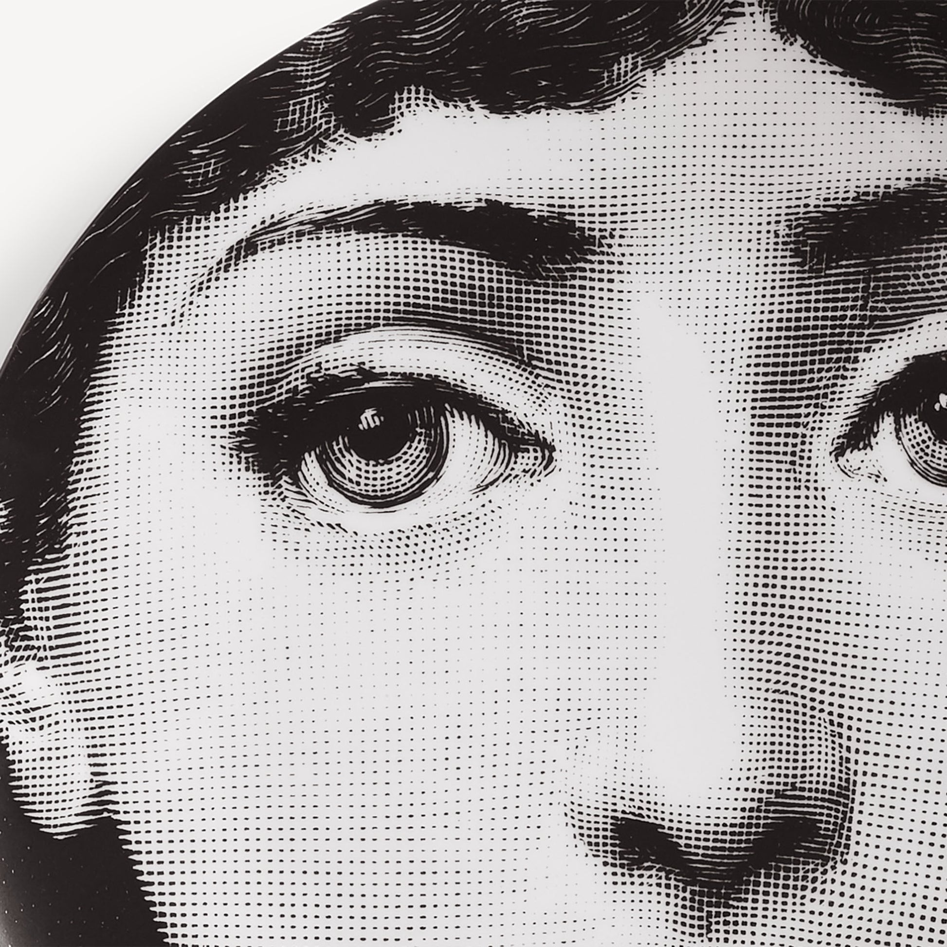 - The face of the opera singer Lina Cavalieri, the iconic protagonist of countless reinterpretations by Piero Fornasetti, embellishes this hand-decorated porcelain plate which belongs to the series Tema e Variazioni: a true collector's item, you can use it as a wall plate, thanks to the presence of two holes on the back, but also as an artistic ornament for your table. For cleaning, we recommend a damp cloth without any soaps or solvents.