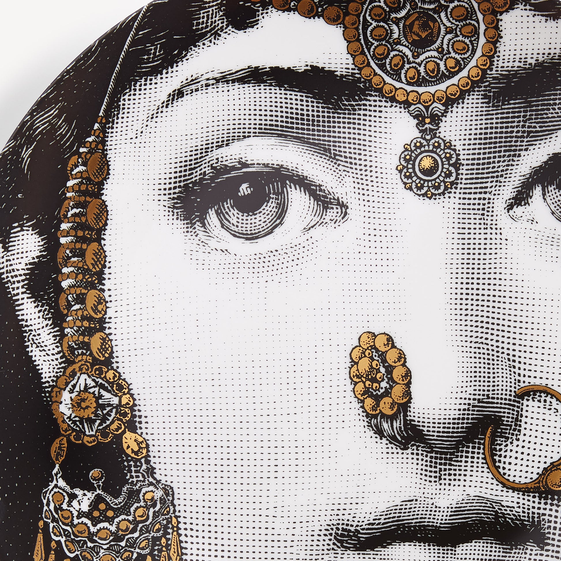 - The essential features of Lina Cavalieri's face are what stand out on this hand-decorated porcelain plate with gold accents from the famous Tema e Variazioni series. A true collector's item, you can use it as a wall plate, thanks to the presence of two holes on the back, but also as an ornamental piece for table art. For cleaning, we recommend using a damp cloth without any soaps or solvents.