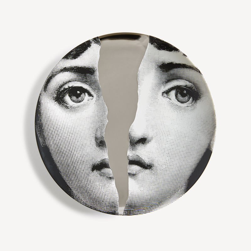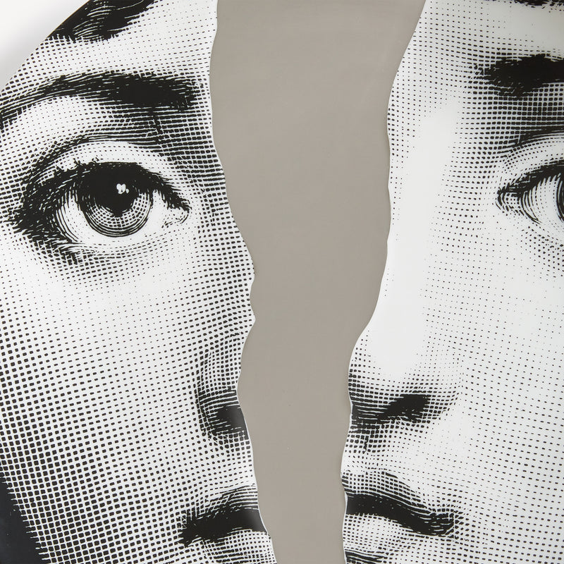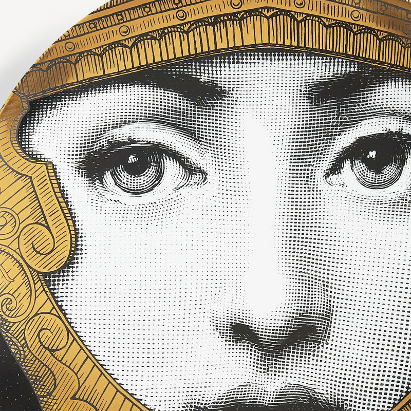 Lina Cavalieri emerged from the pages of a late 19th century magazine, a classical beauty with an enigmatic gaze. Fascinated by her, Piero Fornasetti dedicated an endless series of variations, multiples, games, poetic ideas and metaphysical portraits to the face of the famous opera singer. Suggestive, mysterious, surprised, seductive, with a moustache, glasses, a crown or a balaclava: however it is reinvented, Lina's face remains unmistakable. An icon that has become the symbol of Fornasetti and his poetics.