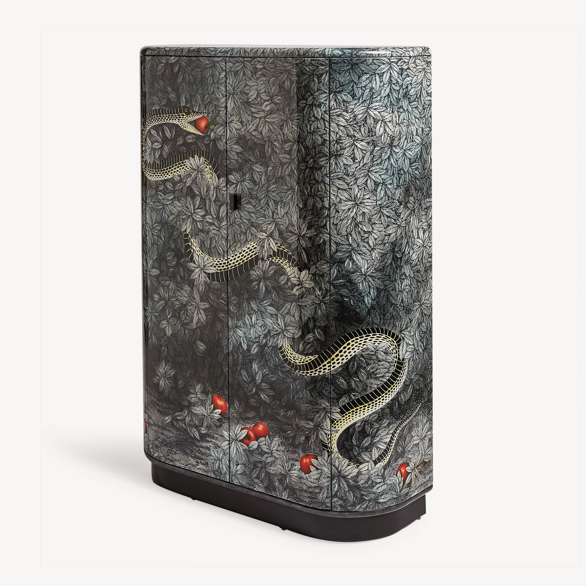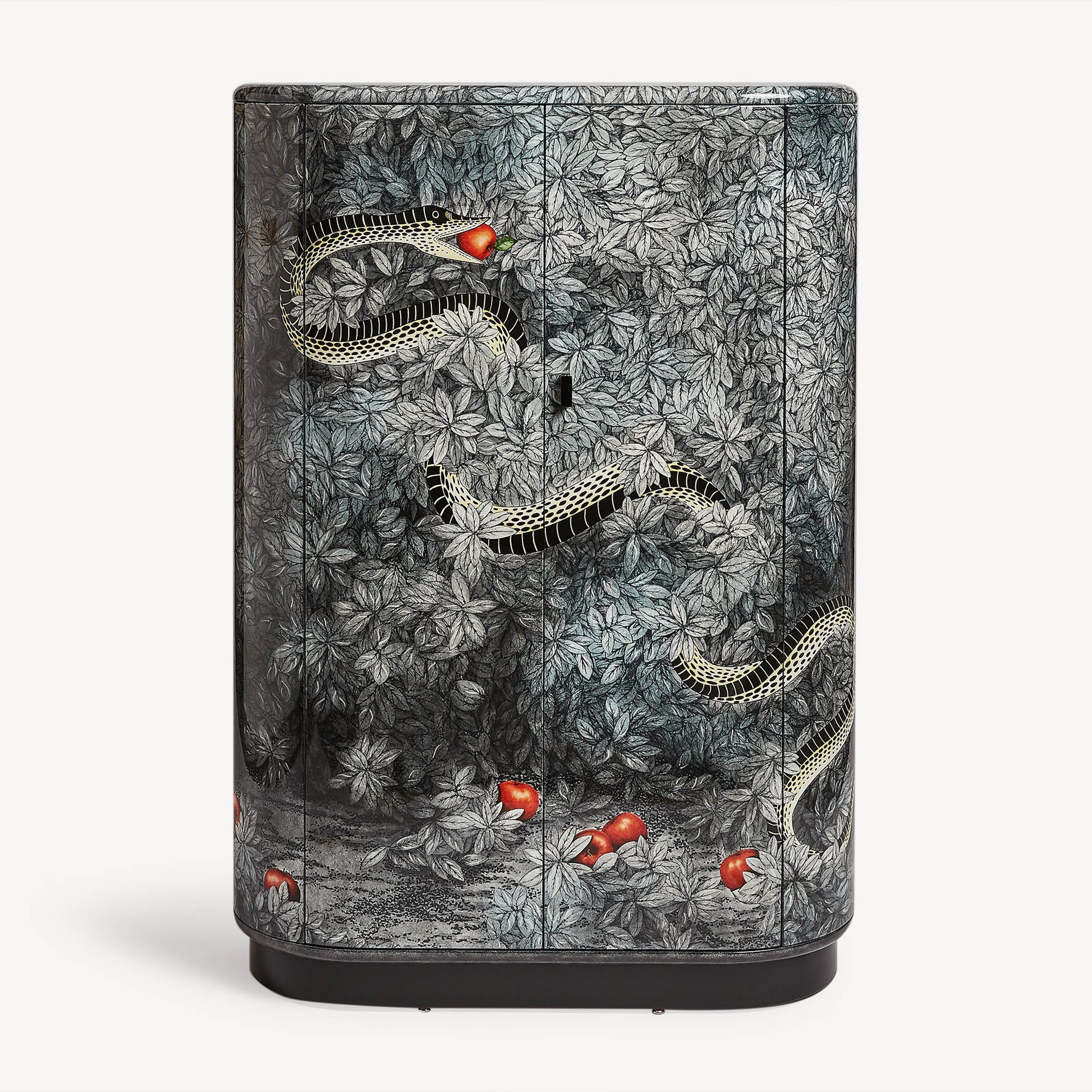- This cabinet with its rounded, elegant shapes quickly became one of the most popular classics of all time. Silkscreened, painted, and lacquered by hand, it is decorated with the tempting snake, an eternal symbol of seduction and an example of Fornasetti's timeless aesthetic.