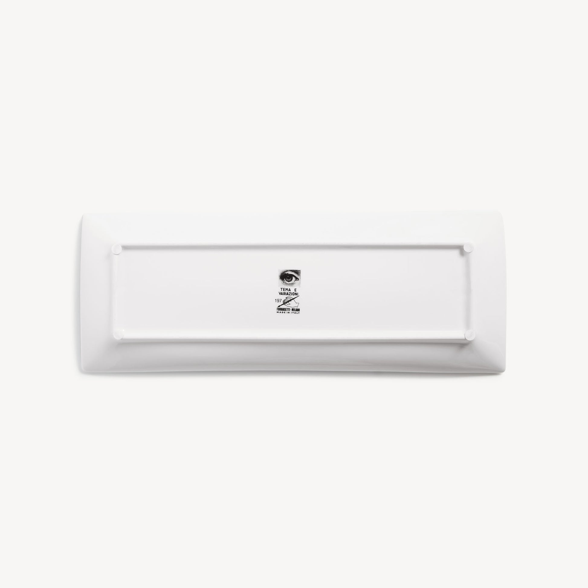 This Fornasetti rectangular tray enriches the Tema e Variazioni series with a decorative game on the boundaries between reality and imagination.