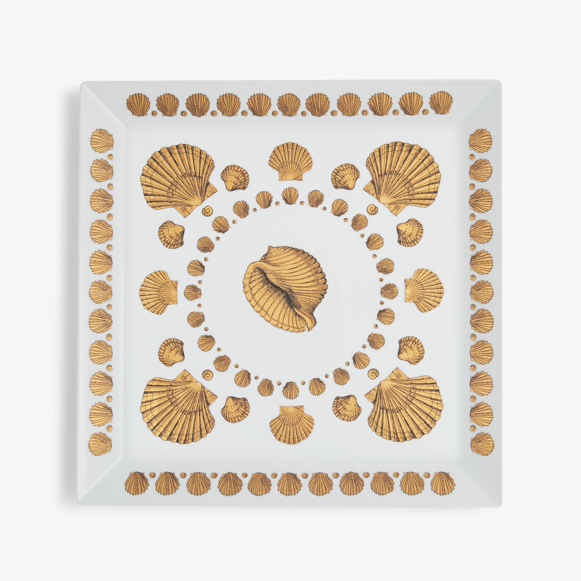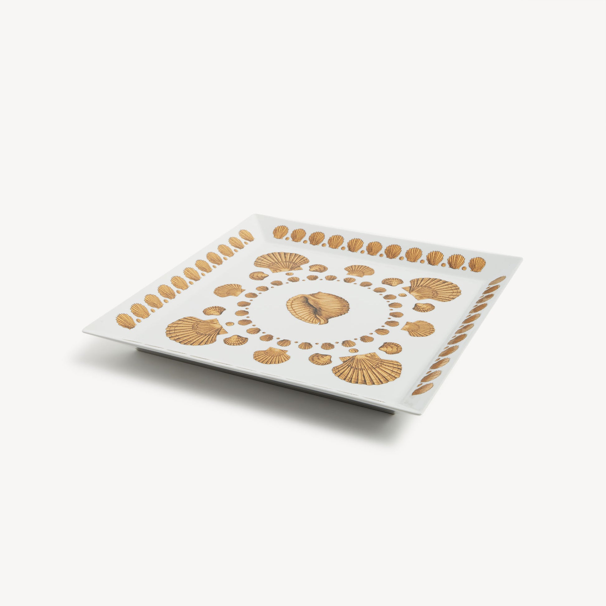 Fornasetti's craftsmanship and imagination transform this porcelain tray into a versatile piece of design: to enhance a table, to hold papers and small objects, or to display purely as a decorative element.