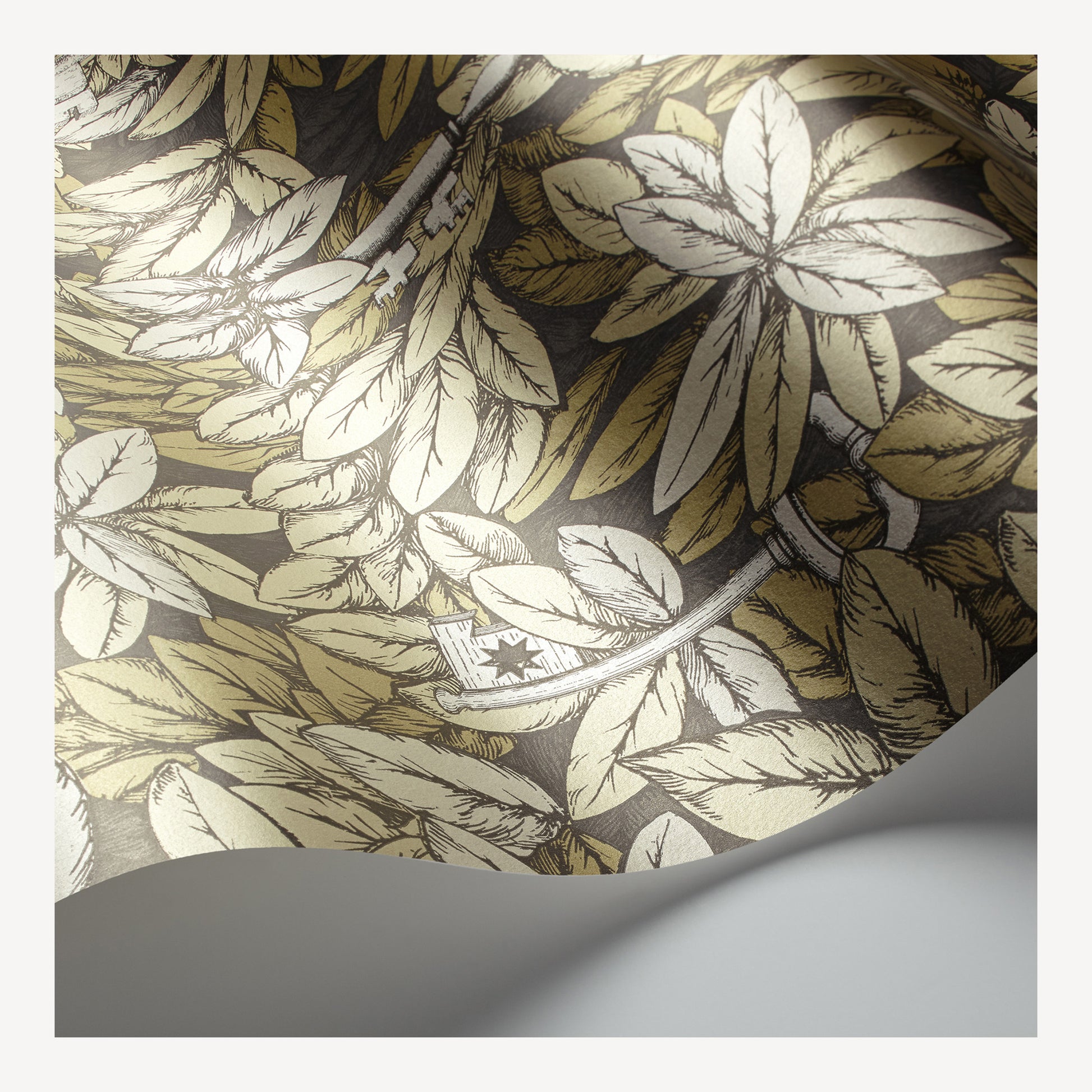 This foliage wallpaper has a magical quality, drawing the eye through and around the leaves to discover each of the 'secret keys' hidden within.