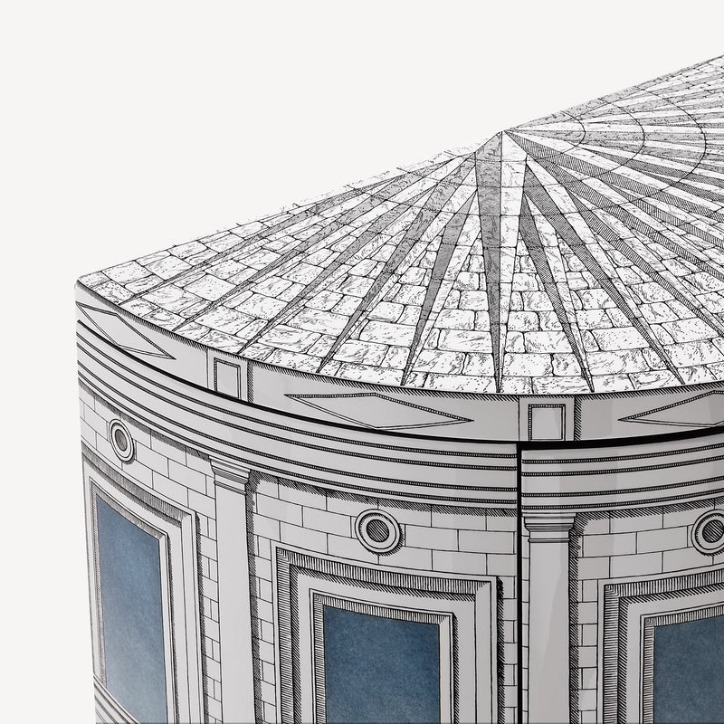 Through meticulous woodwork, careful screen-printing and hand-drawn finishing touches by the Milanese Atelier, the trunk is an icon that embodies the artistry of Louis Vuitton and Fornasetti.