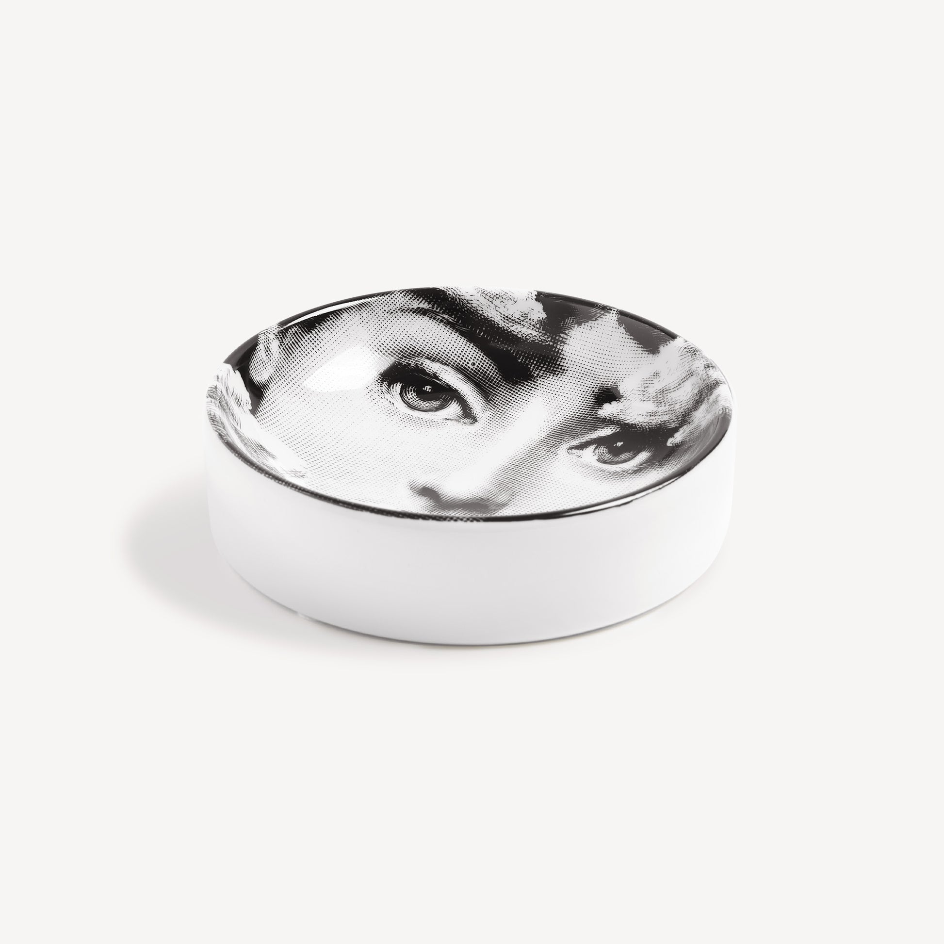 - The face of opera singer Lina Cavalieri, reinterpreted by Piero Fornasetti, embellishes this hand-decorated porcelain ashtray, part of the iconic Tema e Variazioni series: an everyday object thus becomes a true collector's item.