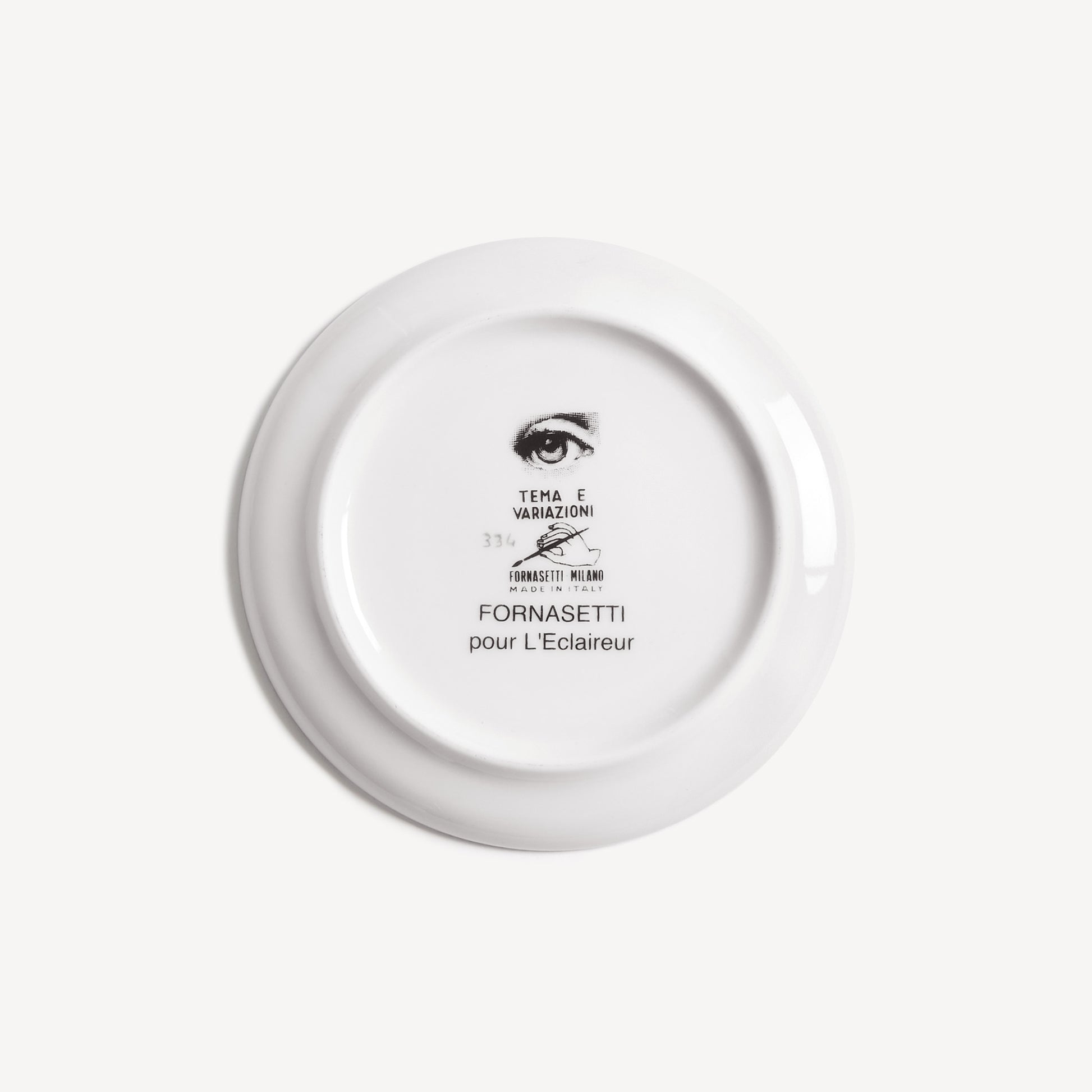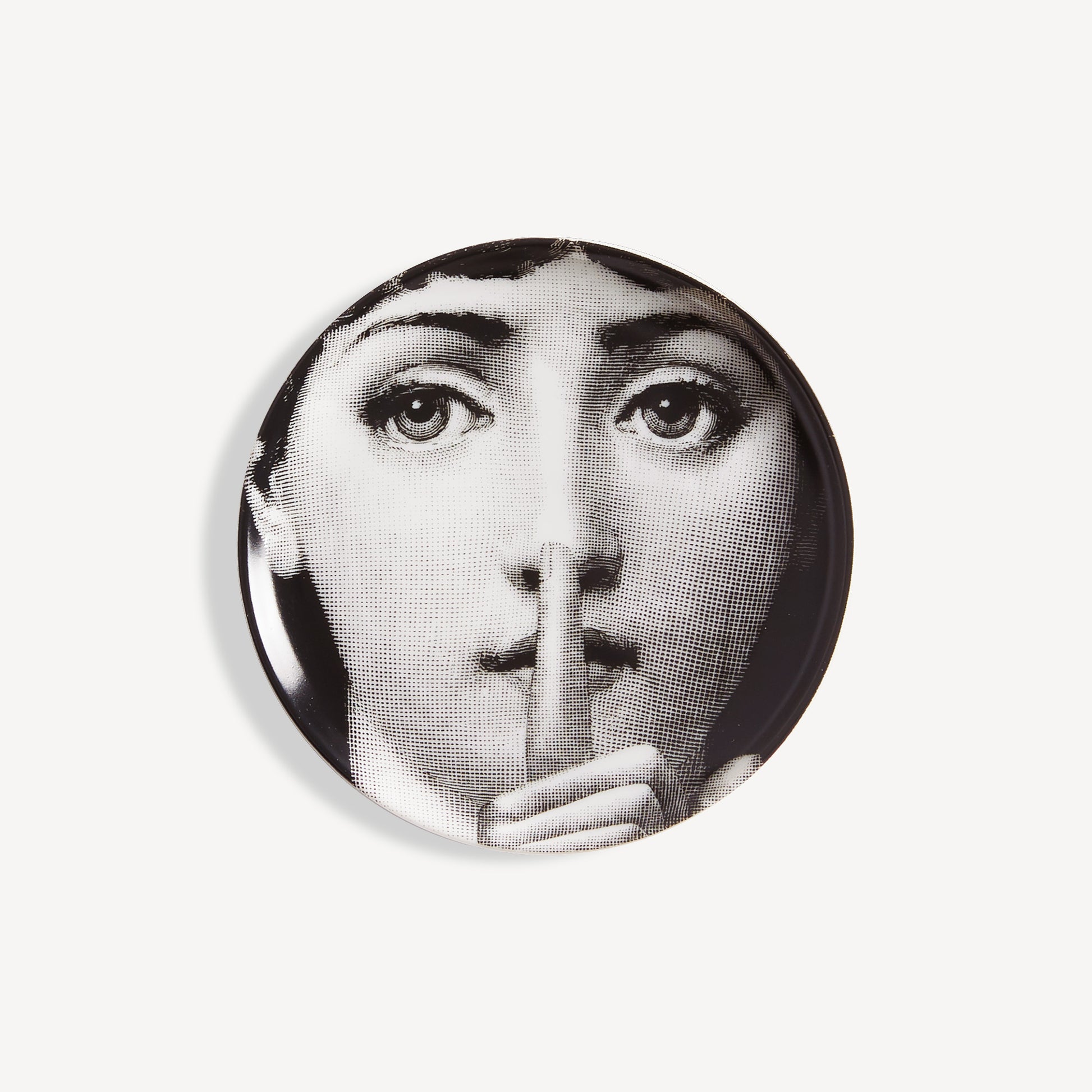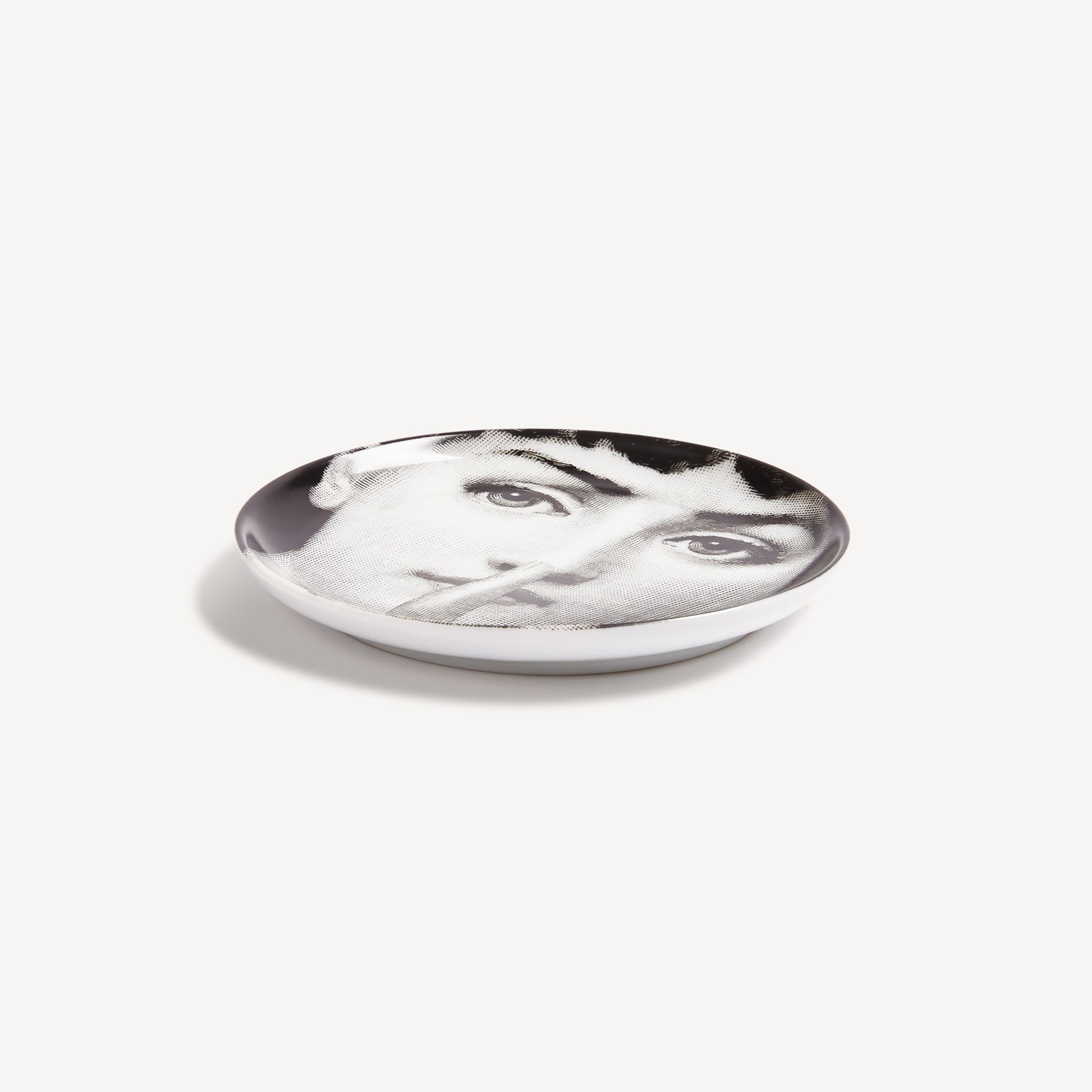 - The round shape of this decorative holder frames Lina Cavalieri's features in one of the innumerable interpretations Fornasetti dedicated to her in the Tema e Variazioni series.