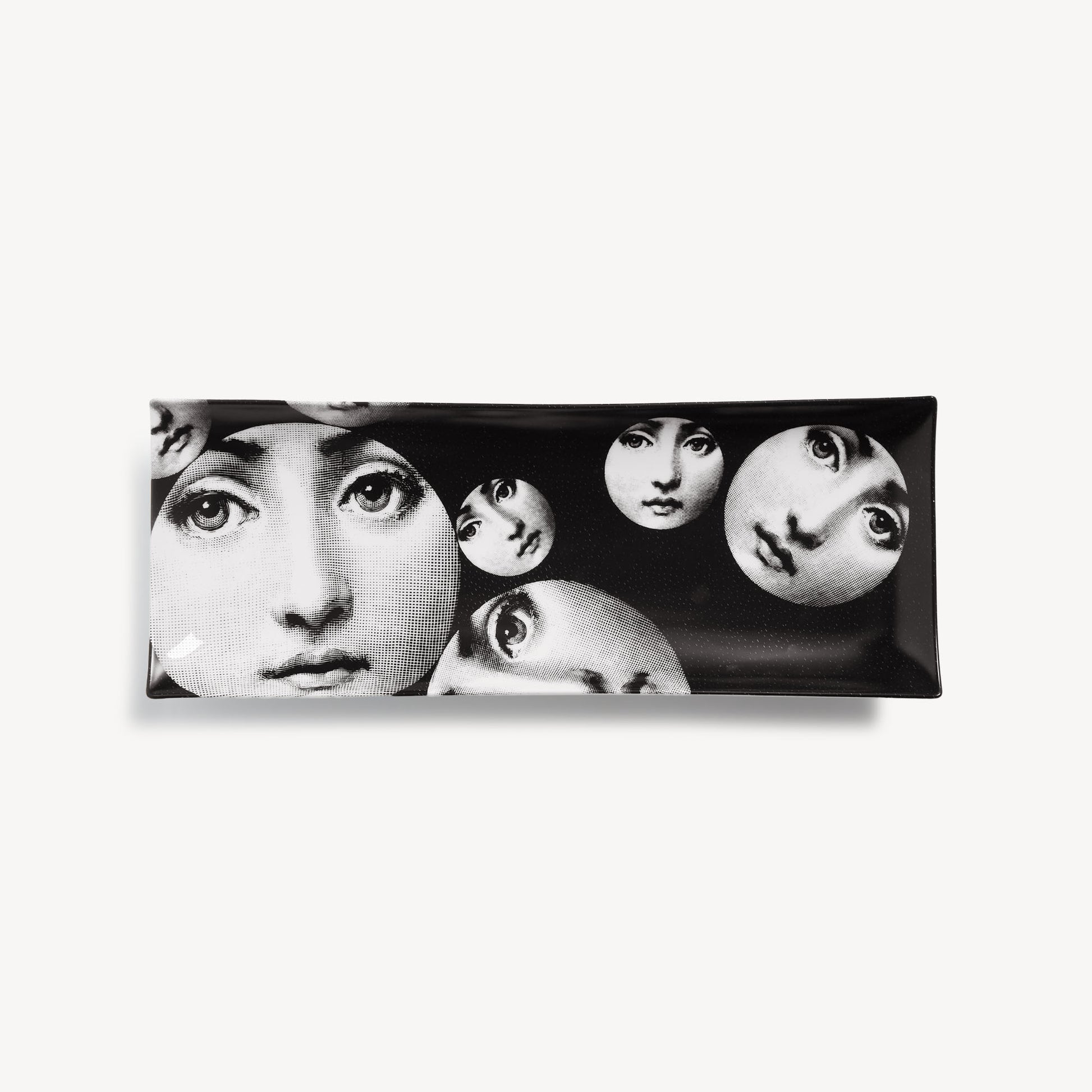 This Fornasetti rectangular tray enriches the Tema e Variazioni series with a decorative game on the boundaries between reality and imagination.