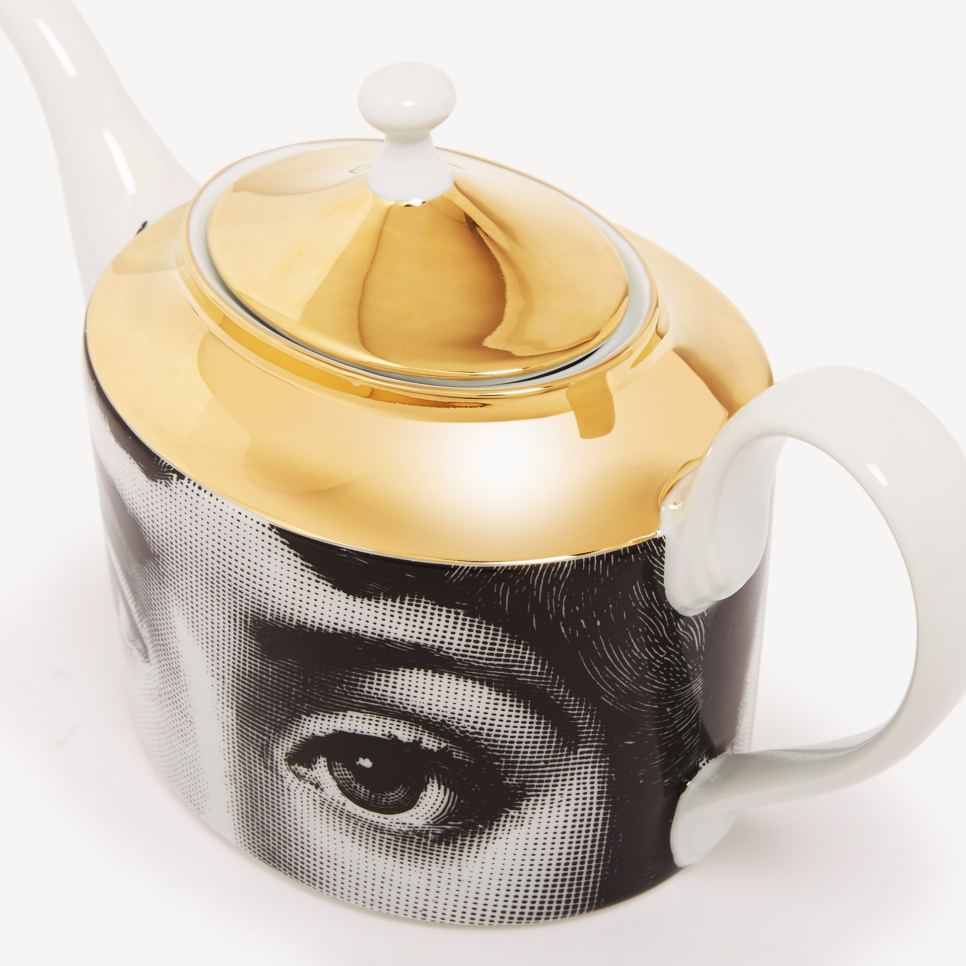 - The essential features of Lina Cavalieri's face characterise this hand-decorated porcelain teapot with gold accents that belongs to the famous Tema e Variazioni series. A true collector's item that renders a quotidian moment of pleasure iconic.