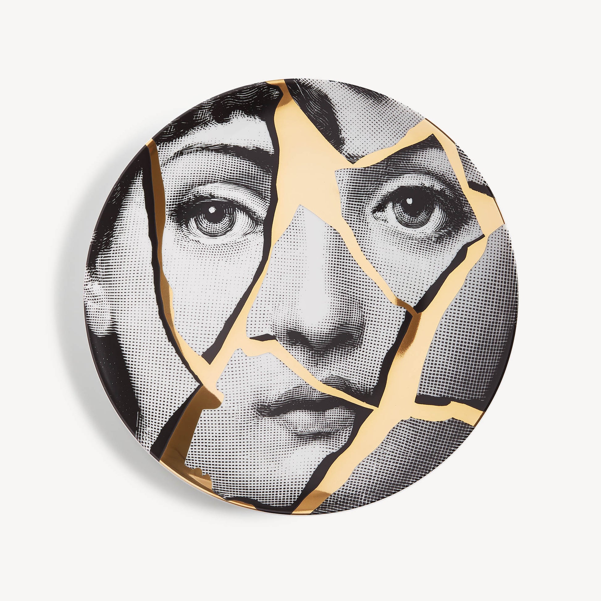 - L’iconique série Tema e Variazioni se dénoue autour des déclinaisons du visage de la chanteuse lyrique Lina Cavalieri par la main de Fornasetti. Cette assiette en porcelaine décorée à la main avec des accents dorés se présente comme un objet prisé des collectionneurs et des amateurs d’art. À vous de choisir si l’utiliser comme assiette décorative murale, grâce aux deux trous percés à l’arrière, ou comme fonction ornementale pour l’art de la table. Pour le nettoyage, utiliser de préférence un chiffon humide sans détergent.